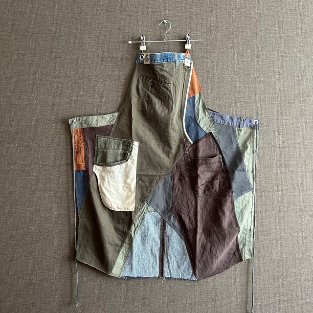instagram→@easyskanking で最新情報発信しております。 是非ご覧になってみてください☆ |||||||||||||||||||||||||||||||||||||||||||||||||||||||||||||||| 【平置きサイズ】 《幅》 約80cm 《長さ》 約96cm 《重さ》 280g ◆最長部分で計測しております。 (採寸に若干の誤差が生じる場合がございます。ご了承下さい) ♦︎全て加工しておりません。自然光で撮影しております。 ♦︎model→161cm |||||||||||||||||||||||||||||||||||||||||||||||||||||||||||||||| 古着のリメイク。 ユニークでアートな雰囲気を求める方にぴったりな「唯一無二のパッチワークエプロン」。 古着 や ミリタリー ファブリック、を解体し、パッチワーク のように一つ一つ丁寧に縫い合わせた リメイクエプロン は、まさに 一点物 の魅力を存分に感じさせてくれます。 お料理の時間はもちろん、キャンプコーデ や ガーデニング、マルシェ出店 など、日常からアウトドアシーンまで幅広く活躍。 カフェエプロン や ワークエプロン としてもおすすめで、 アメカジ スタイル、ナチュラルスタイルにもよく馴染みます。プレゼントにも。 紐は後ろでクロスタイプ(バッテンタイプ)なので肩が凝りません。見た目の半分の軽さを実感していただけるはず。 男女兼用・洗濯OK・軽くて丈夫・バイバイ肩凝り 使い込むほどに味わいが増し、経年変化を楽しめるのも魅力。 ハンドメイド ならではの温もりと、アップサイクル の要素がたっぷりと詰まった特別な一枚です。 あなたの日常に個性と温かさをプラスします。 ハンドメイドならではのぬくもりを感じながら、毎日をより豊かに彩ってください。 |||||||||||||||||||||||||||||||||||||||||||||||||||||||||||||||| ♦︎当店の商品は、古着からのハンドメイドリメイクで、全てほぼ一点物となります。古着とハンドメイドへのご理解をいただいてのご購入をお願い致します。 ♦︎古着からのハンドメイドの為、完璧を求められる場合はご購入をお控え頂きますよう重ねてお願い申し上げます。 ♦︎当店の商品は、古着やミリタリーファブリック、南アジアテキスタイルを解体し、それらを組み合わせて作ったリメイク商品になります。 それにより、古着特有の色あせ、糸ほつれ、ダメージ、リペアーなどがある場合がございます。 又、洗濯により、端部から糸ほつれなどが出る場合がございます。それも商品の性質(特徴)となりますので、ご了承頂きますようお願い致します。 尚、端部から出た糸は、お好みでカットして頂く事をオススメ致します。 ♦︎ジーンズと同様に、使っていく度に馴染んでいく、そんな愛着の湧くEASY SKANKINGの商品をお楽しみ下さい。 ♦︎掲載商品の画像に関しまして、お客様のご覧になられますブラウザ、パソコン等の環境や撮影により、実際の商品のお色と相違する場合がございます。あらかじめご了承下さい。