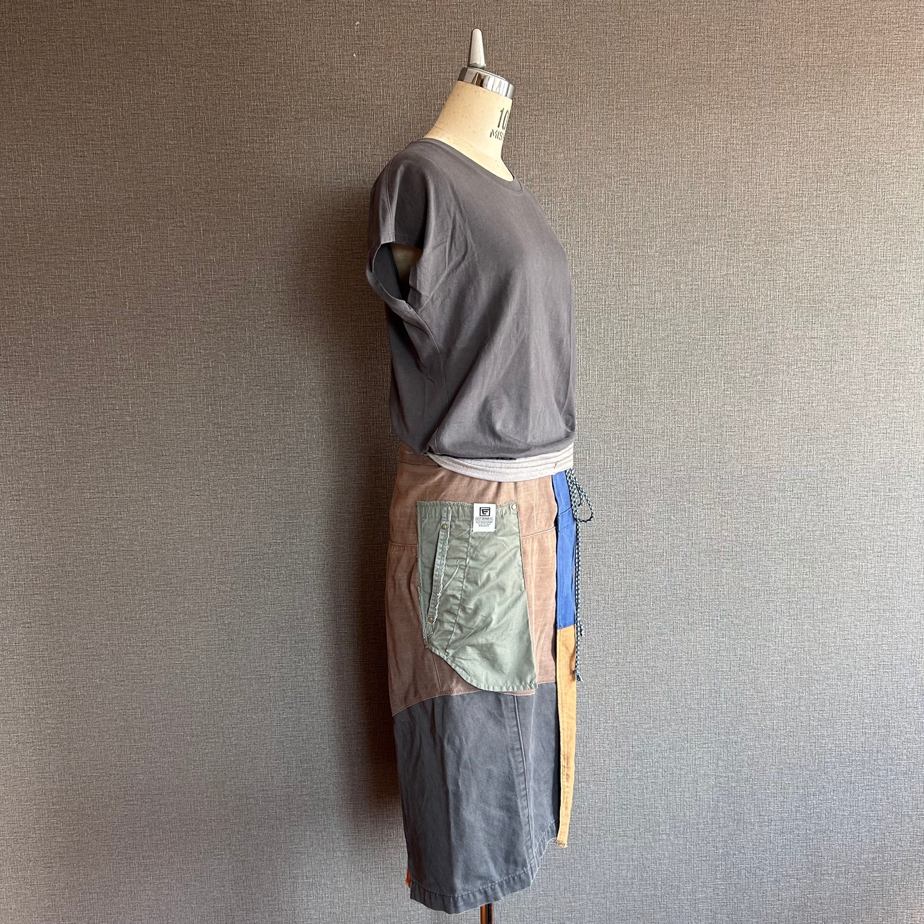 古着 や ミリタリー ファブリック、を解体し、パッチワーク のように一つ一つ丁寧に縫い合わせた リメイクエプロン は、まさに 一点物 の魅力を存分に感じさせてくれます。