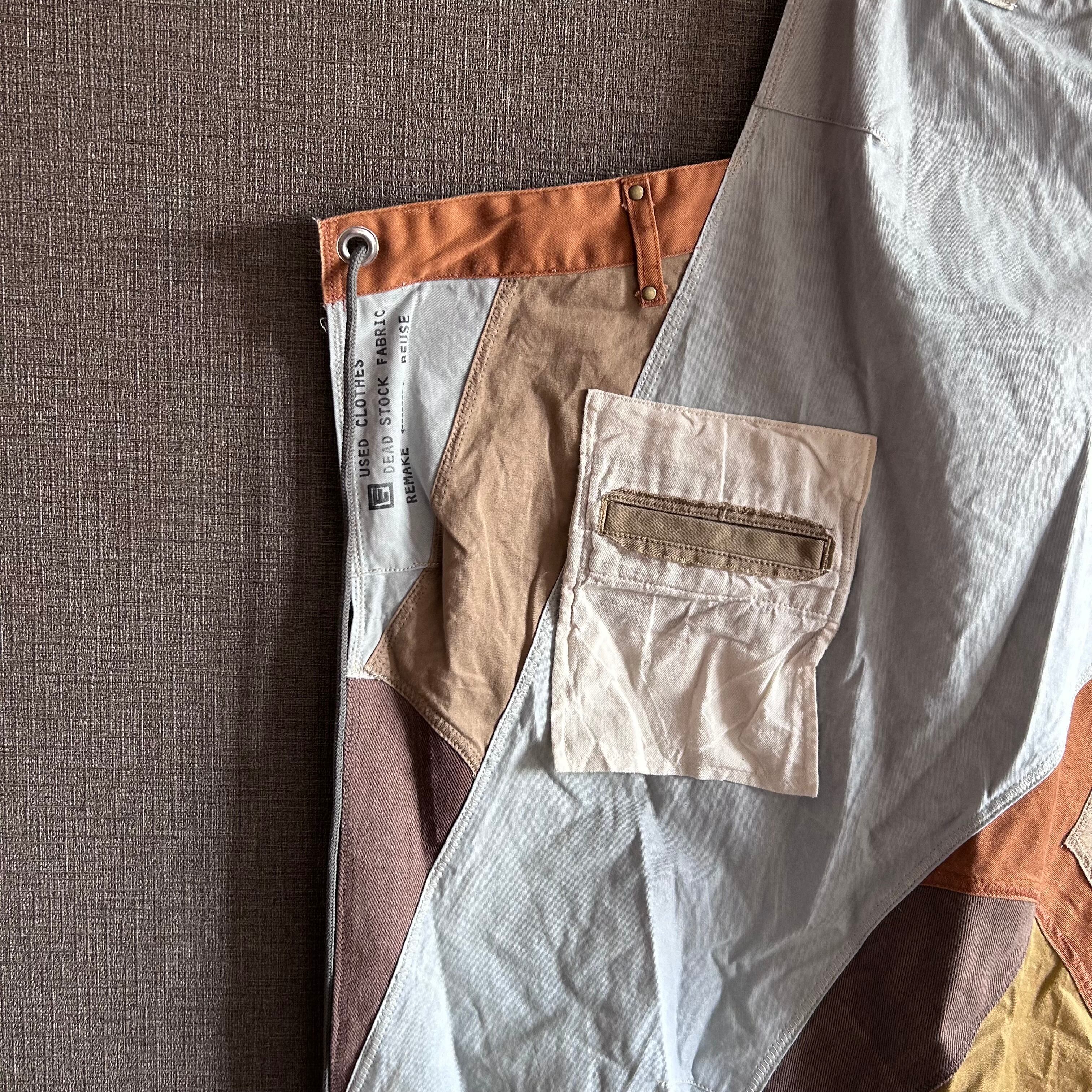 古着を解体し、パッチワークのように一つ一つ丁寧に縫い合わせたこのデザインは、まさに一点物の魅力を存分に感じさせてくれます。