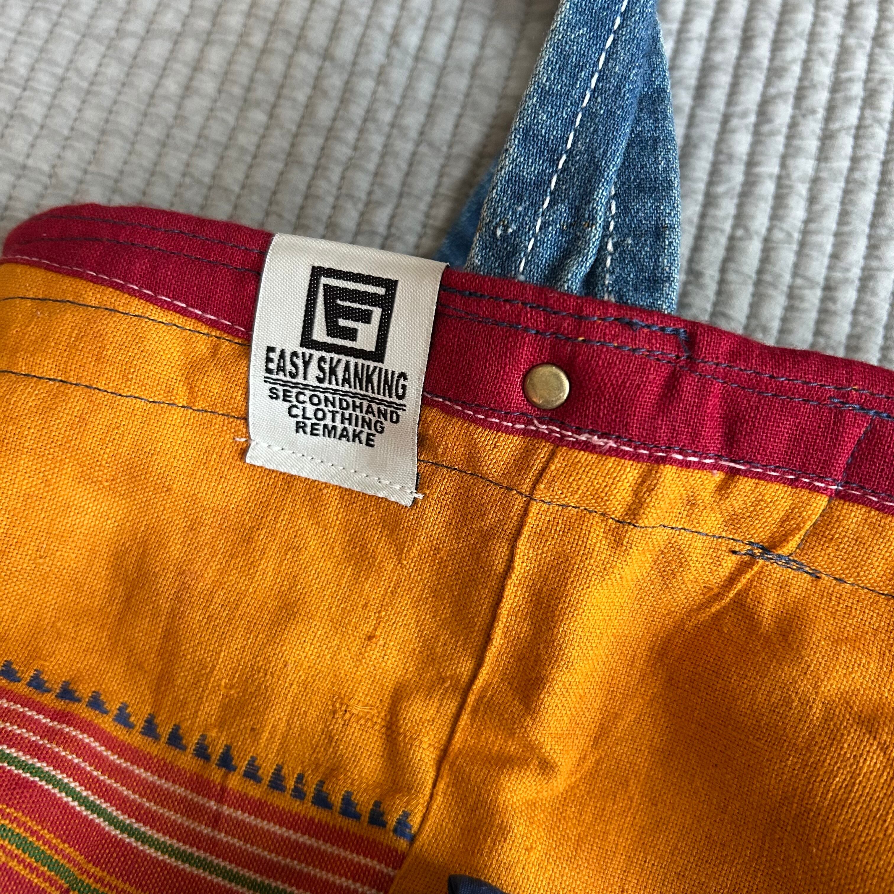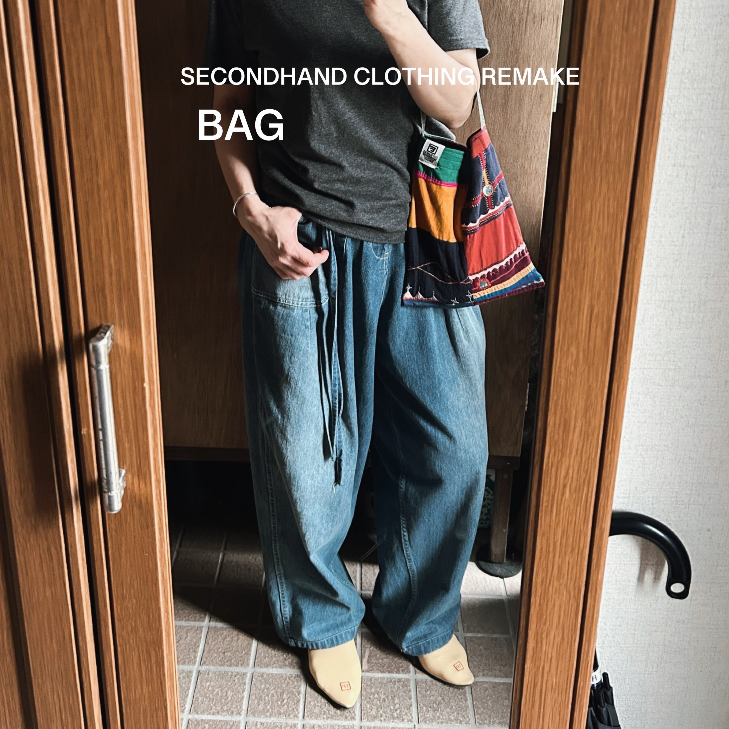 南インドのバンジャラ族の古布刺繍(アンティーク布)を組み合わせたて作られたスカートをリメイクしてBAGにしています。