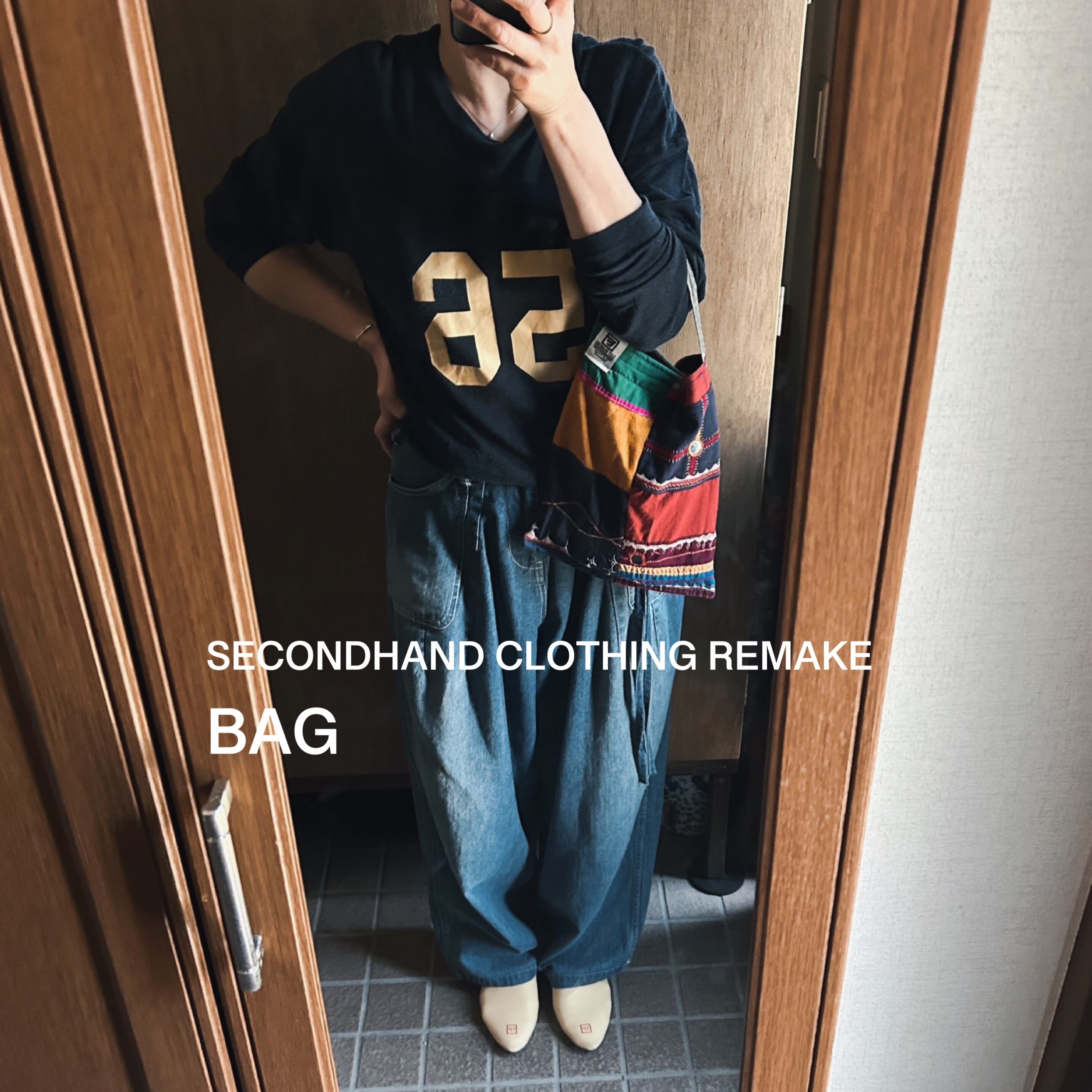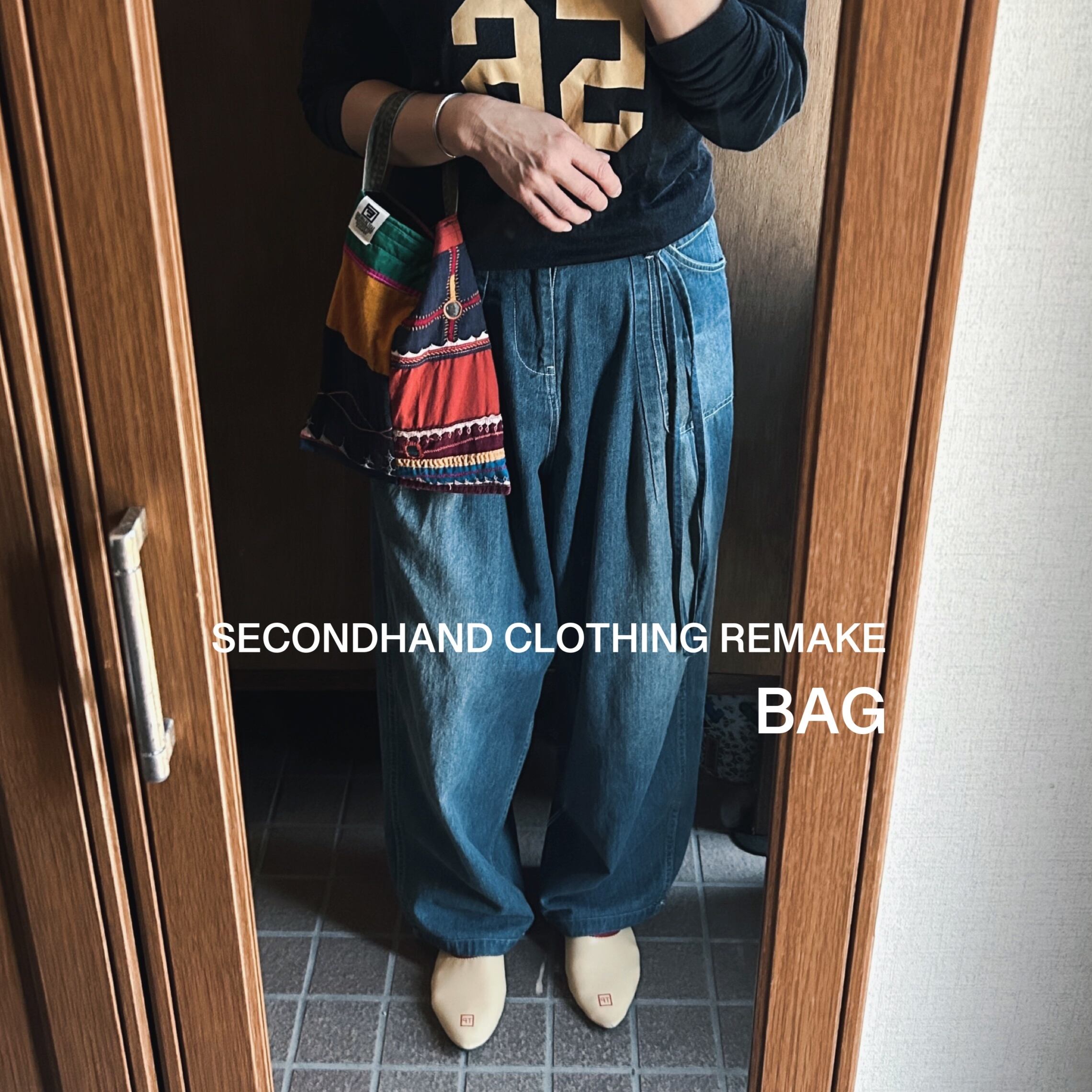 南インドのバンジャラ族の古布刺繍(アンティーク布)を組み合わせたて作られたスカートをリメイクしてBAGにしています。