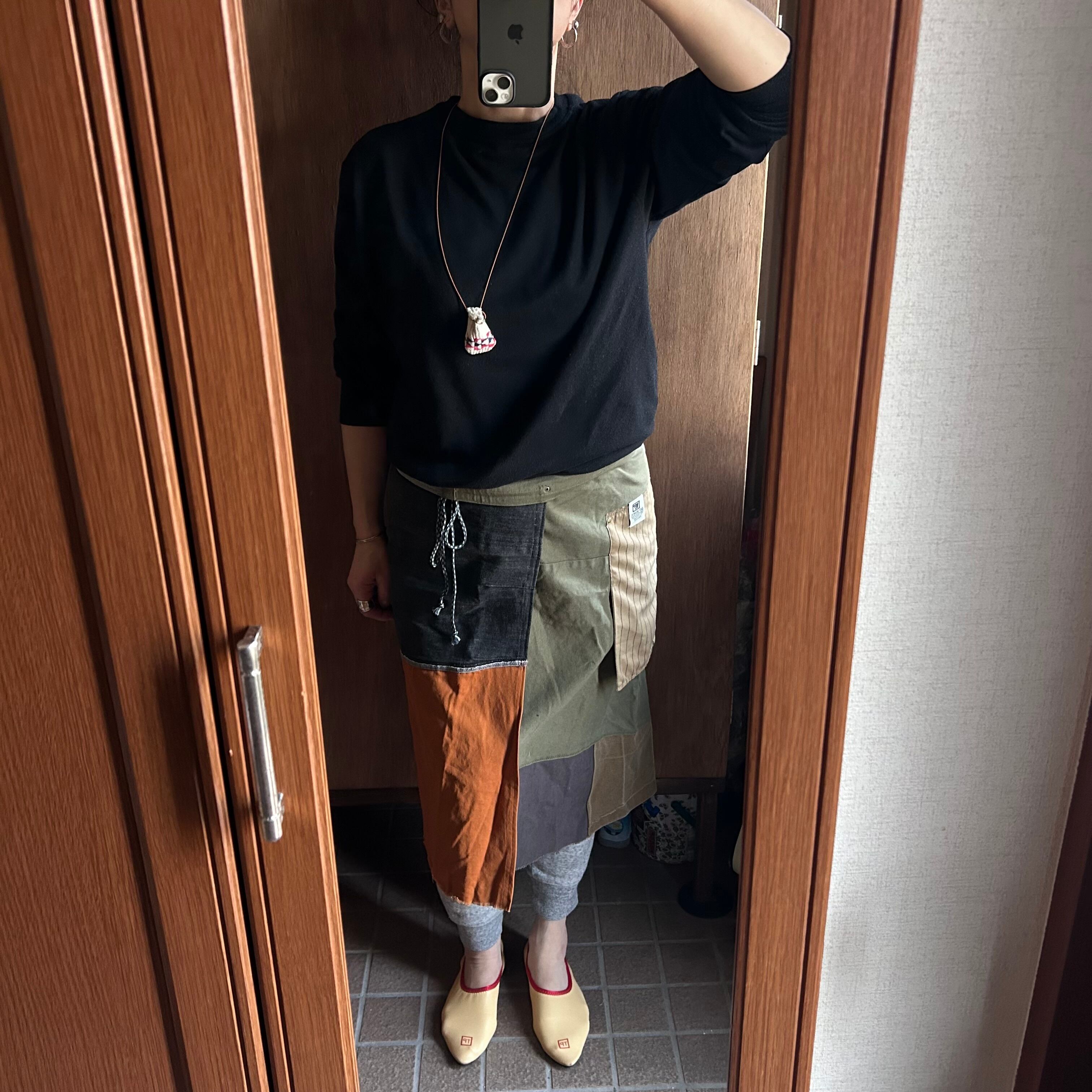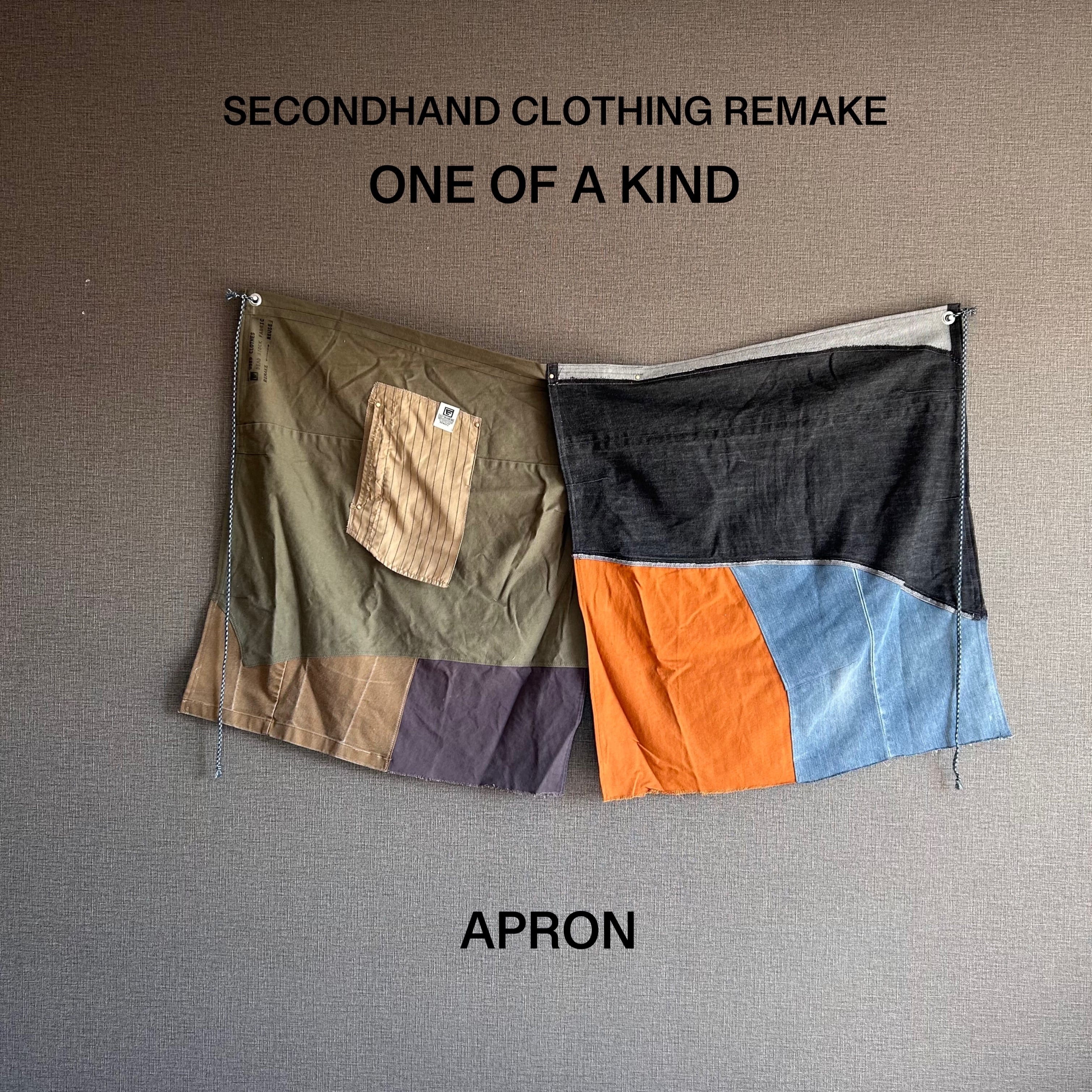 古着 や ミリタリー ファブリック、を解体し、パッチワーク のように一つ一つ丁寧に縫い合わせた リメイクエプロン は、まさに 一点物 の魅力を存分に感じさせてくれます。