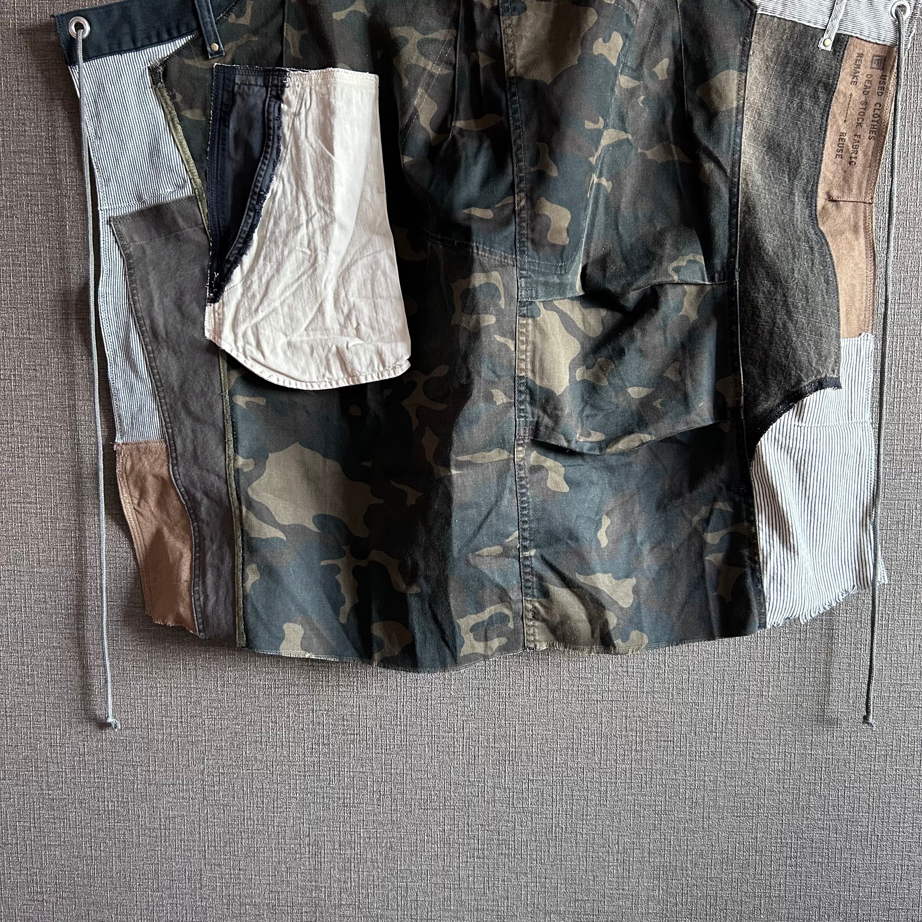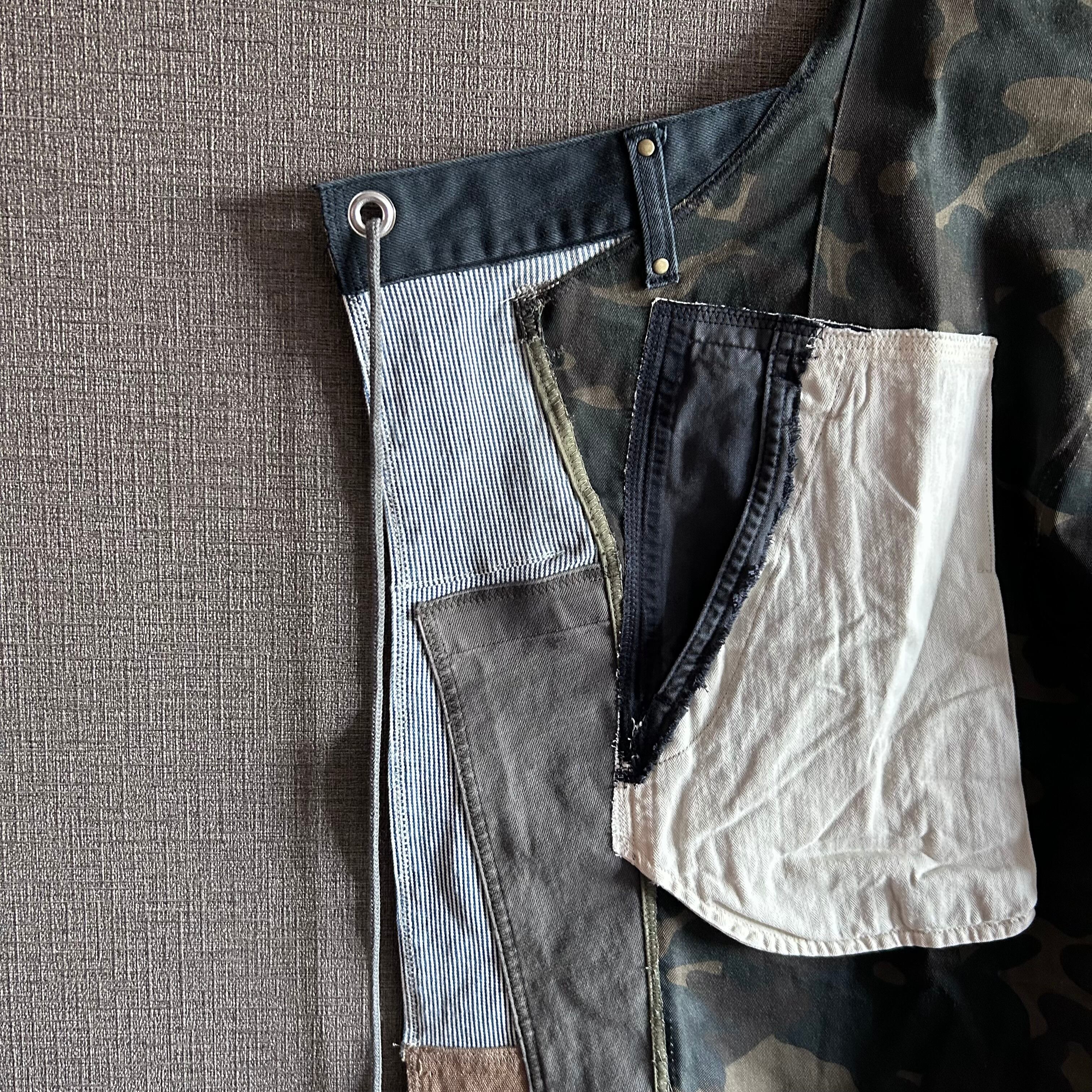 古着を解体し、パッチワークのように一つ一つ丁寧に縫い合わせたこのデザインは、まさに一点物の魅力を存分に感じさせてくれます。