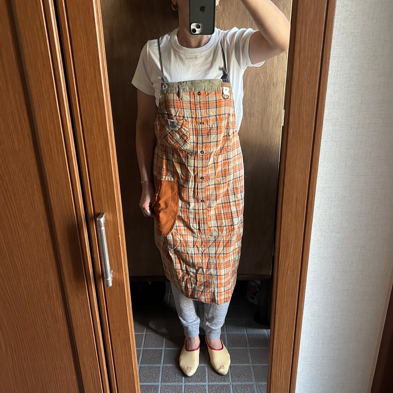 ♦︎ネルシャツのリメイクですので、秋冬エプロン。