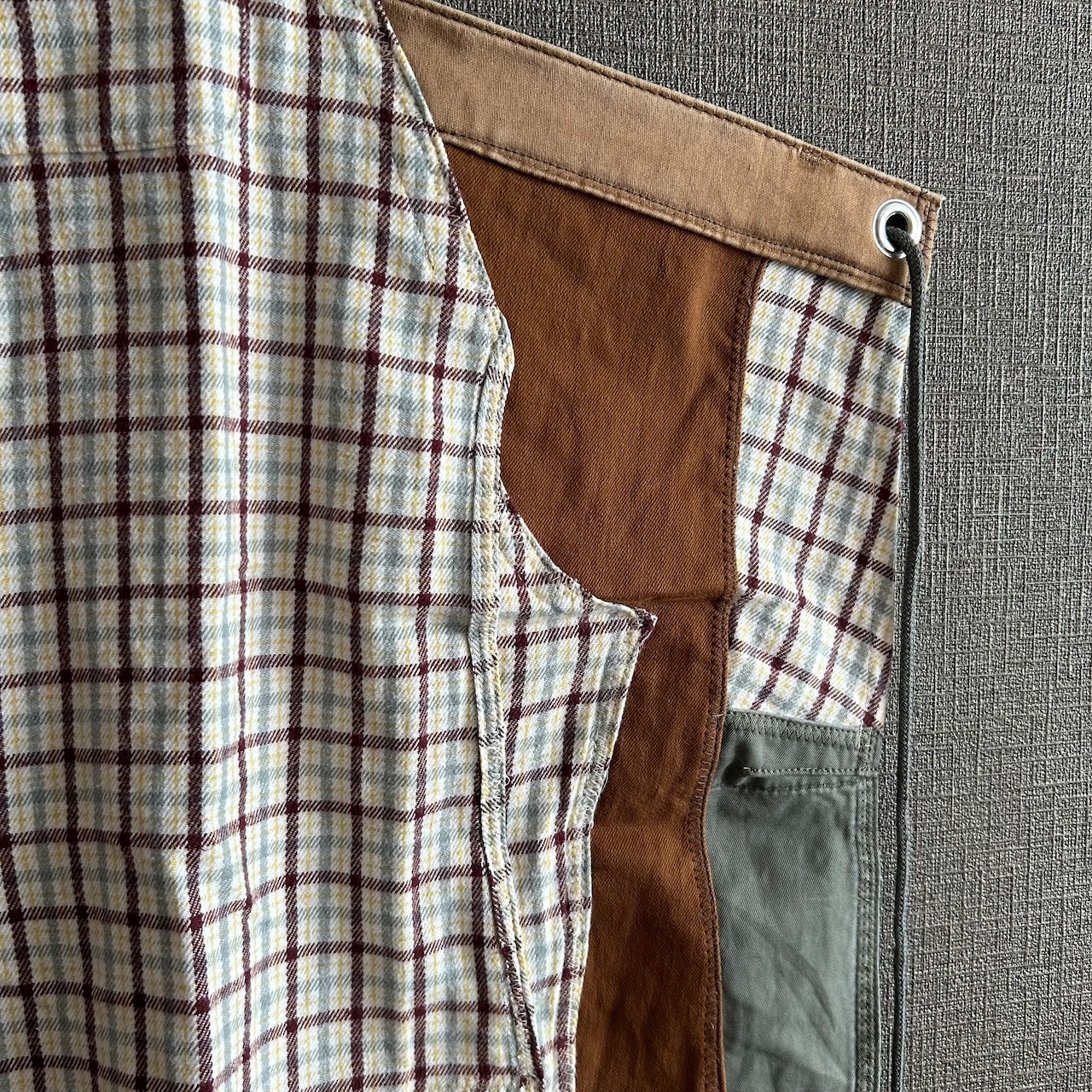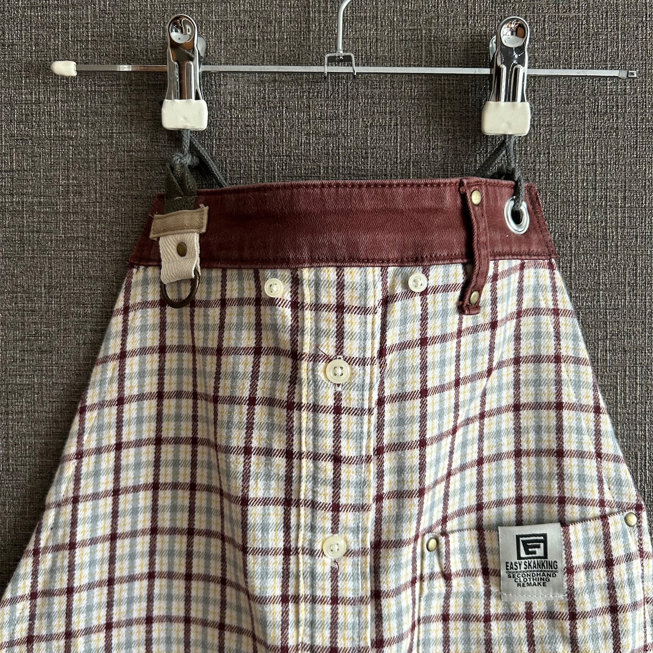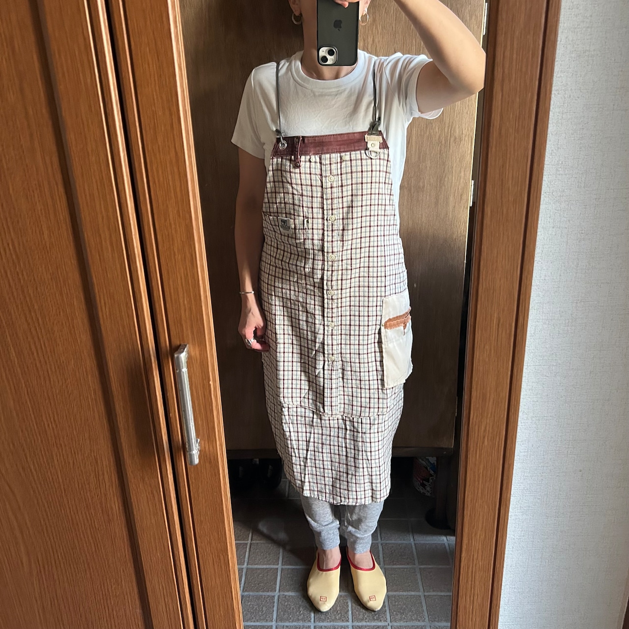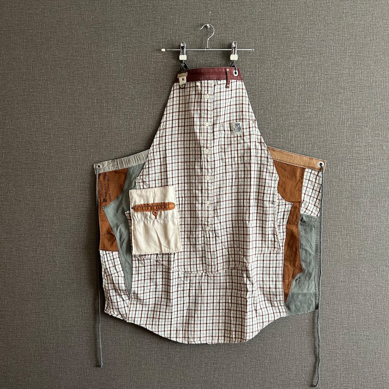 ♦︎ネルシャツのリメイクですので、秋冬エプロン。