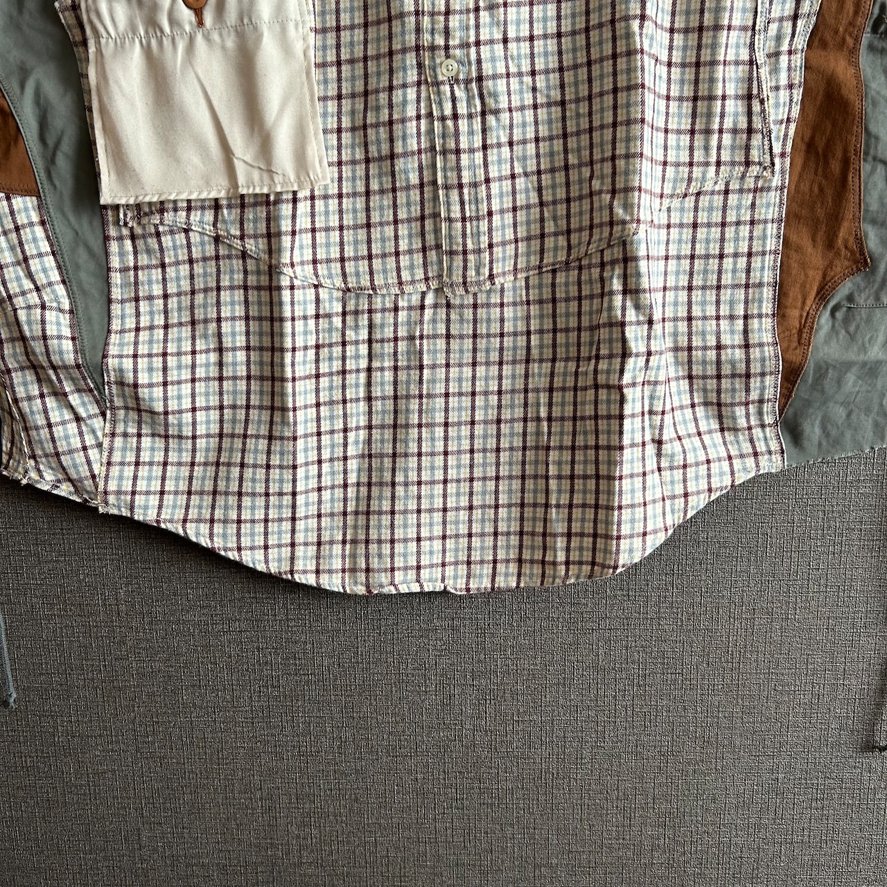 ♦︎当店の商品は、古着やミリタリーファブリック、南アジアテキスタイルを解体し、それらを組み合わせて作ったリメイク商品になります。