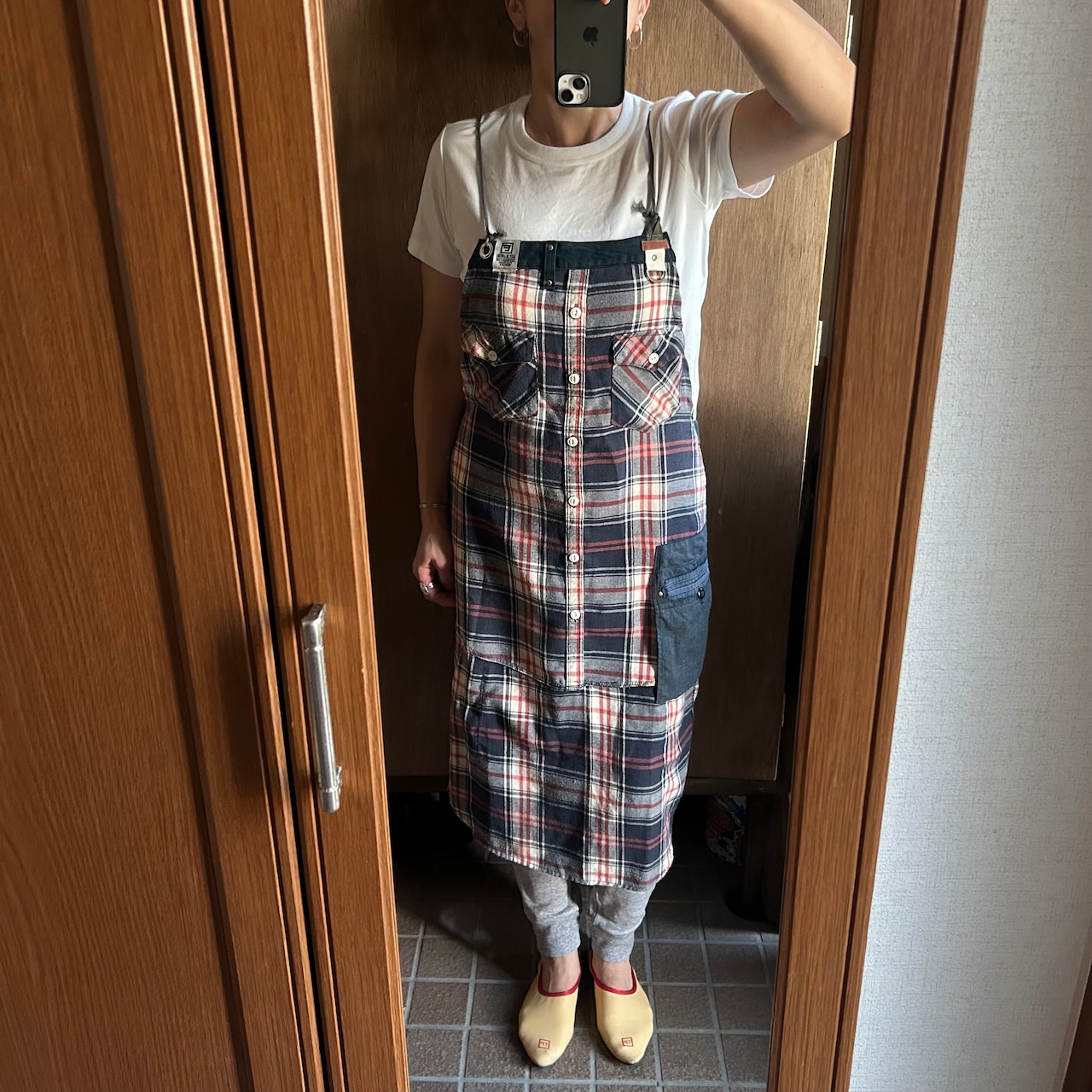 ♦︎ネルシャツのリメイクですので、秋冬エプロン。