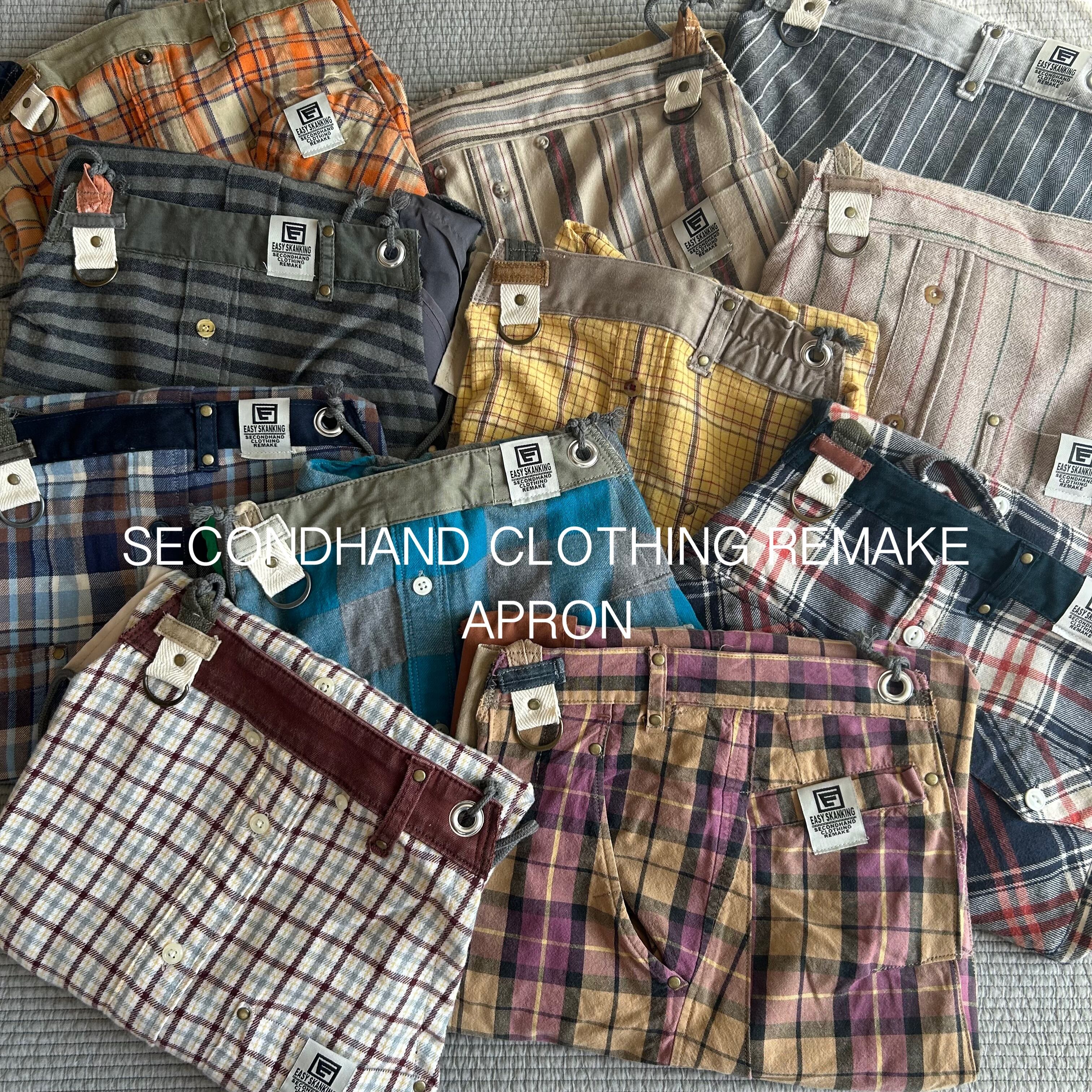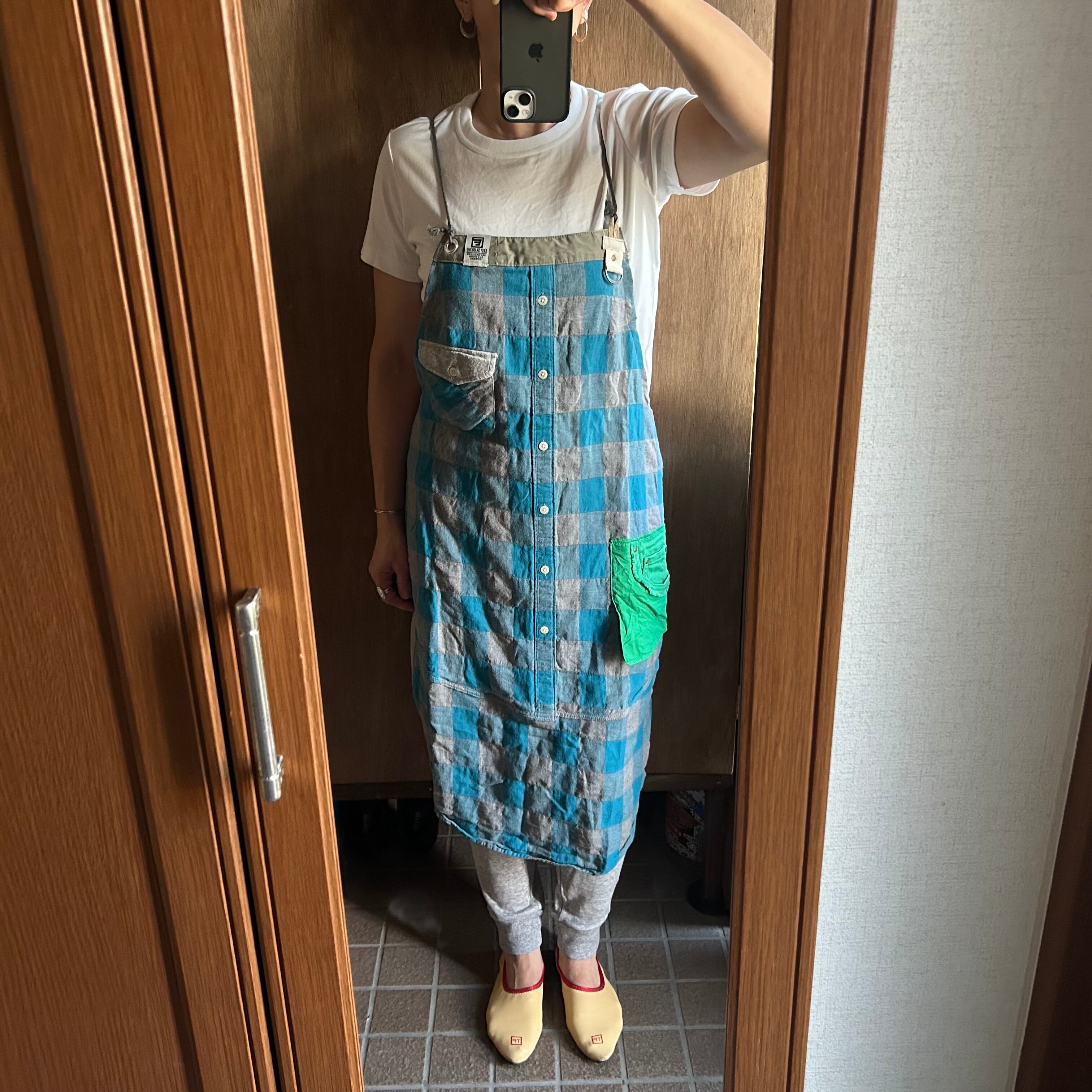 ♦︎ネルシャツのリメイクですので、秋冬エプロン。