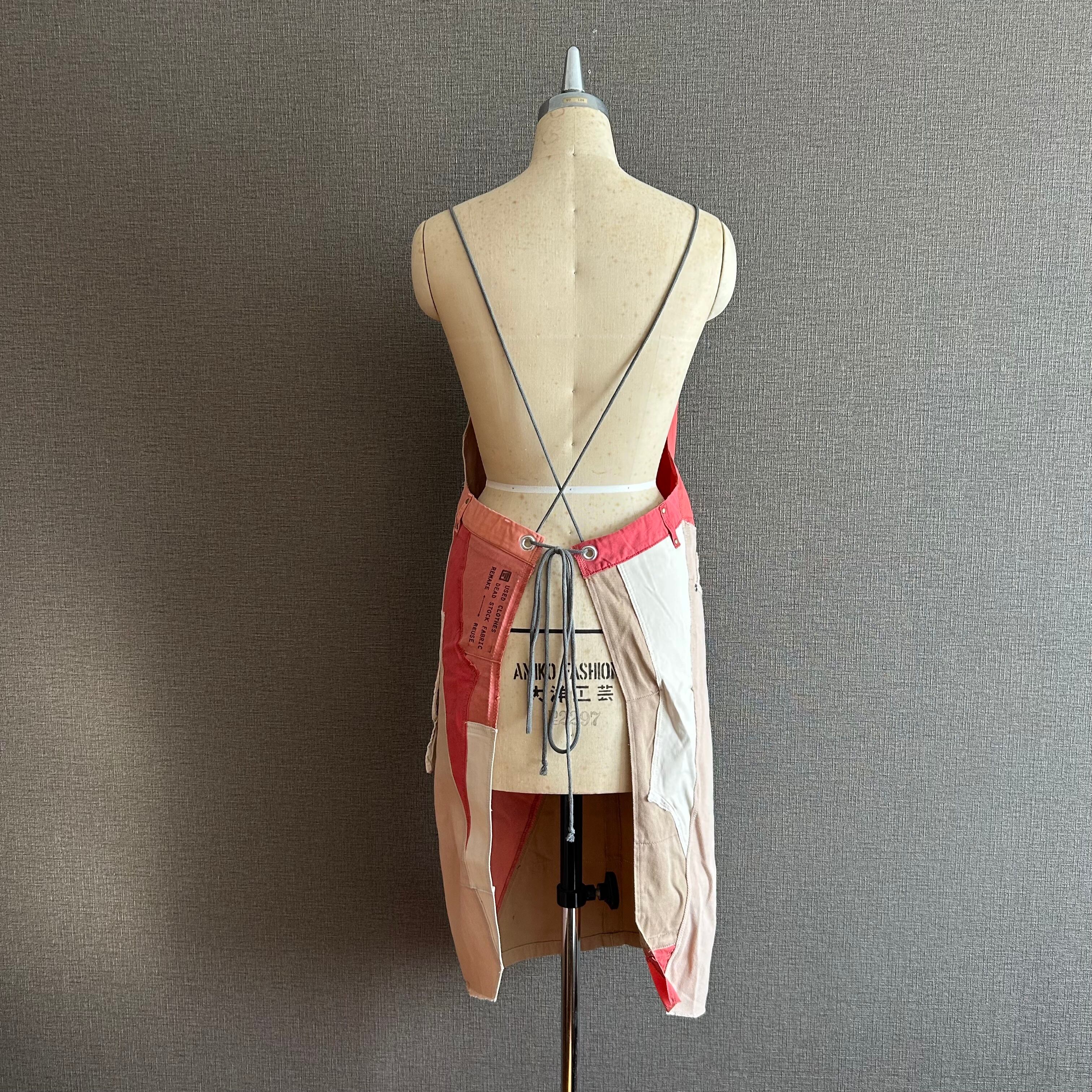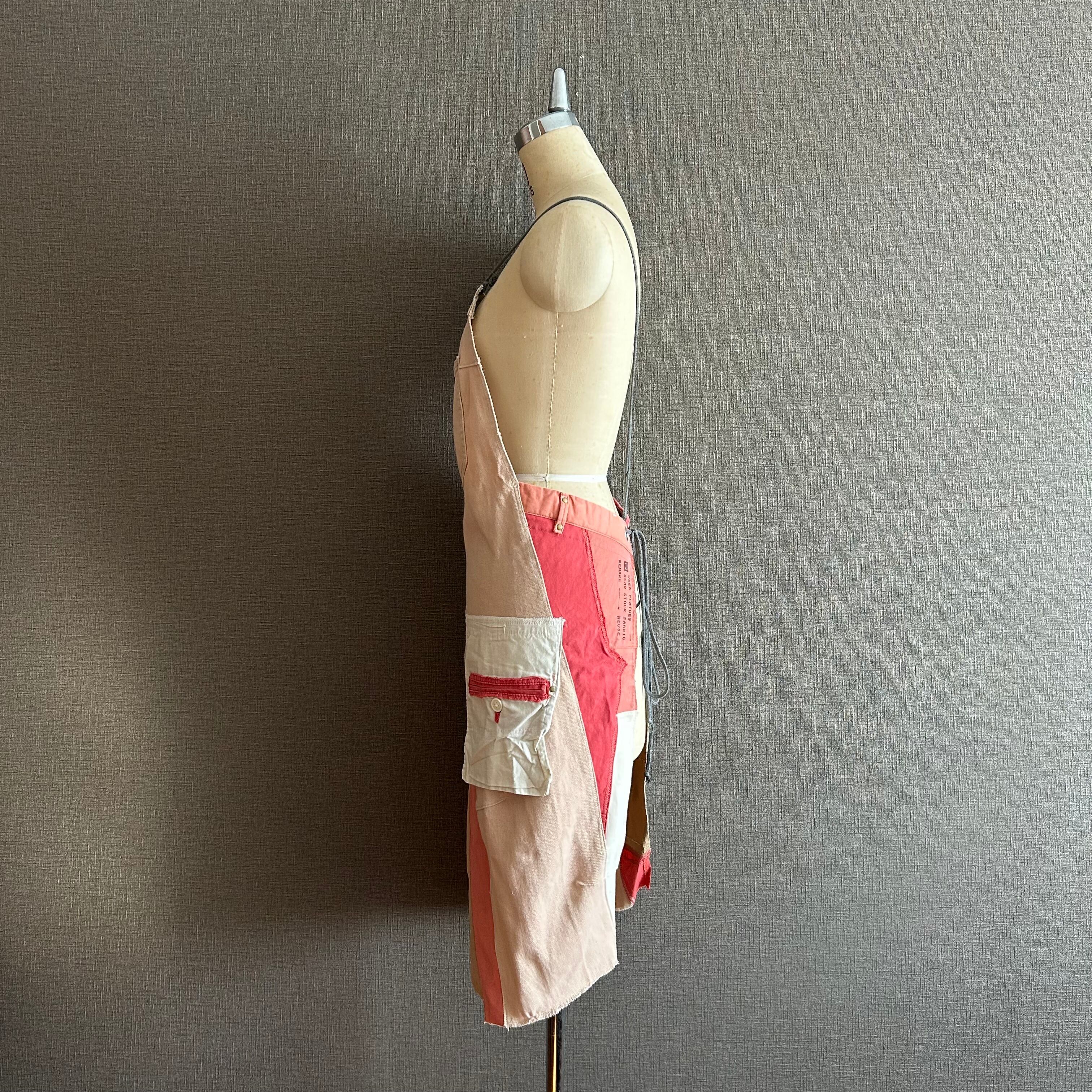 Dismantled from vintage clothing and military fabrics, each piece is meticulously sewn together like patchwork to create a remade apron that truly embodies the charm of a one-of-a-kind piece.