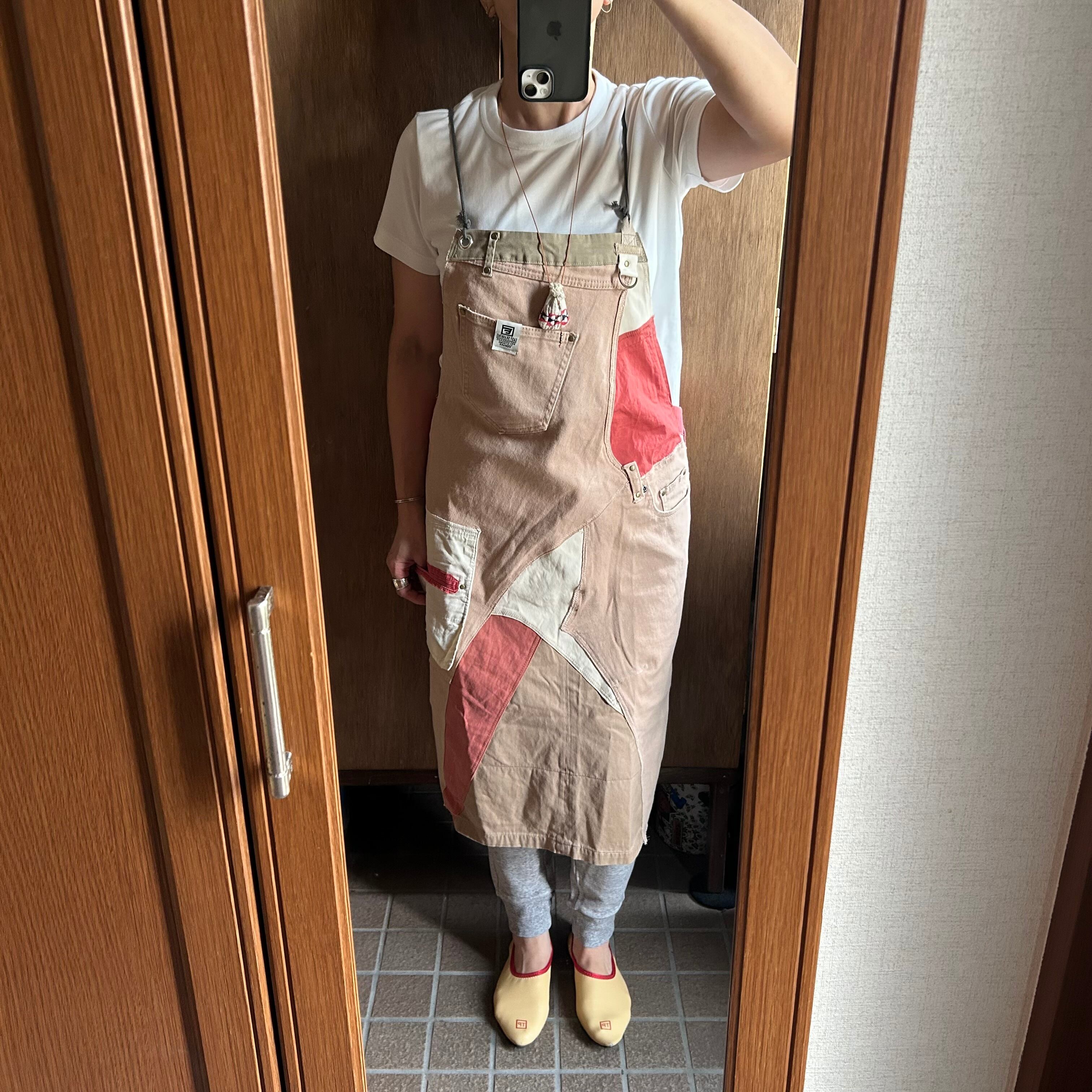 古着 や ミリタリー ファブリック、を解体し、パッチワーク のように一つ一つ丁寧に縫い合わせた リメイクエプロン は、まさに 一点物 の魅力を存分に感じさせてくれます。