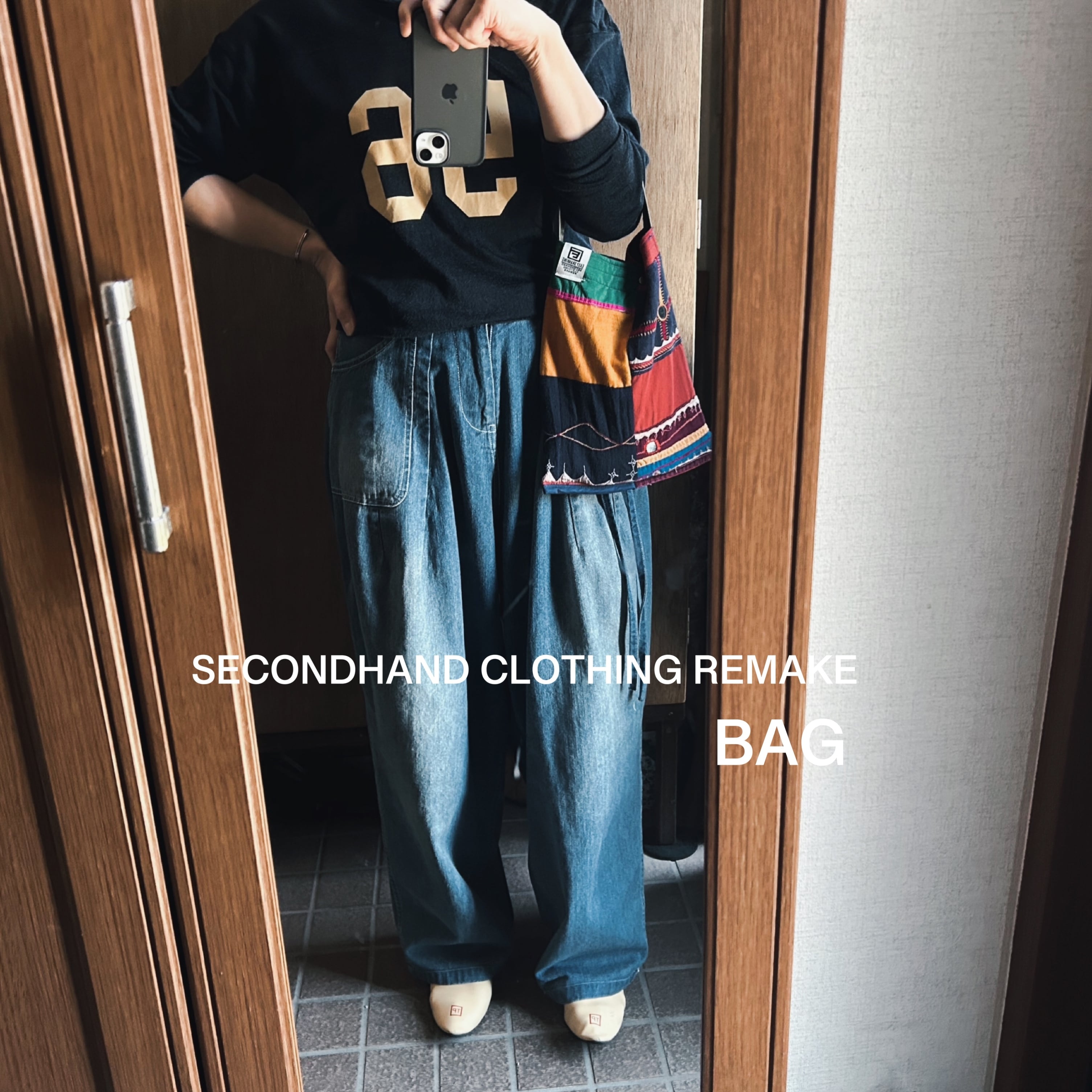 ▶︎持ち手にはエプロン製作時に出てくる古着の生地を採用