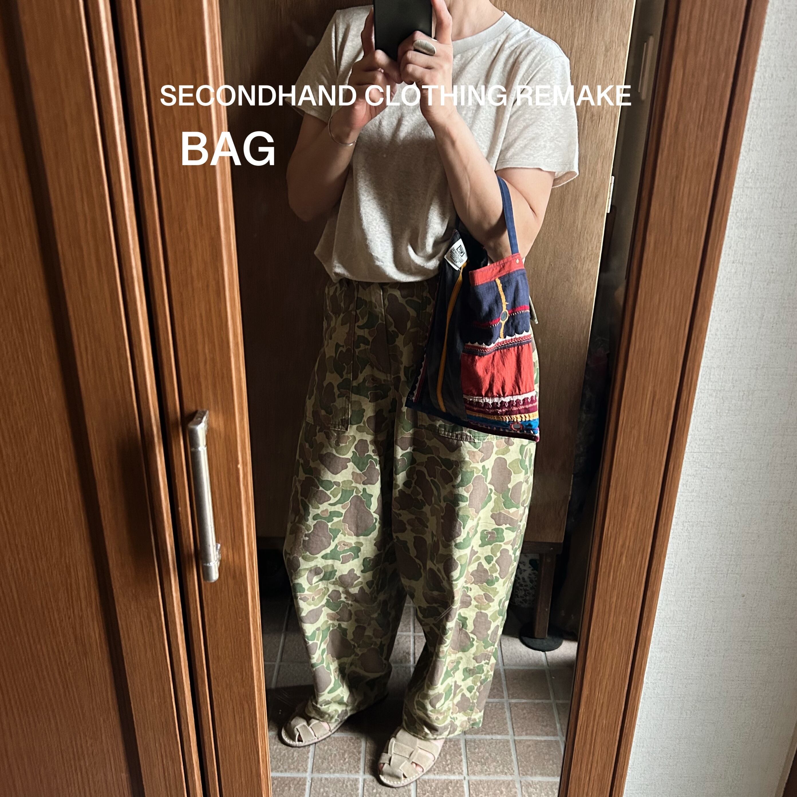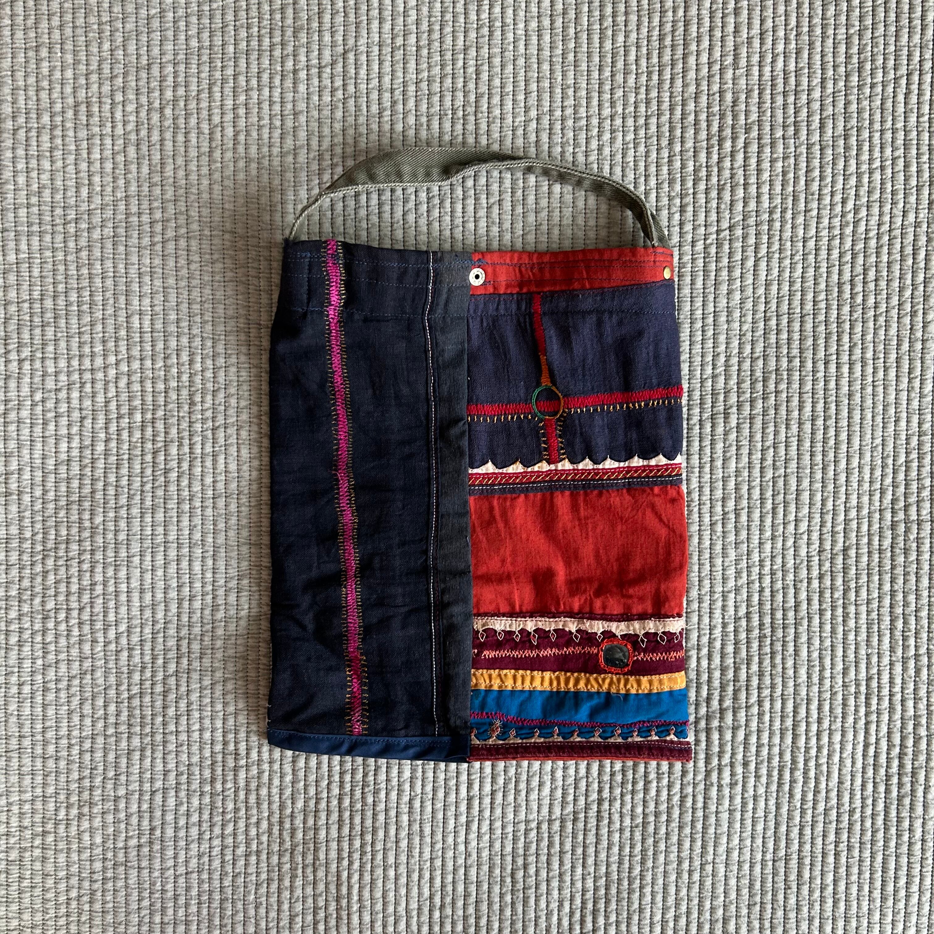 南インドのバンジャラ族の古布刺繍(アンティーク布)を組み合わせたて作られたスカートをリメイクしてBAGにしています。