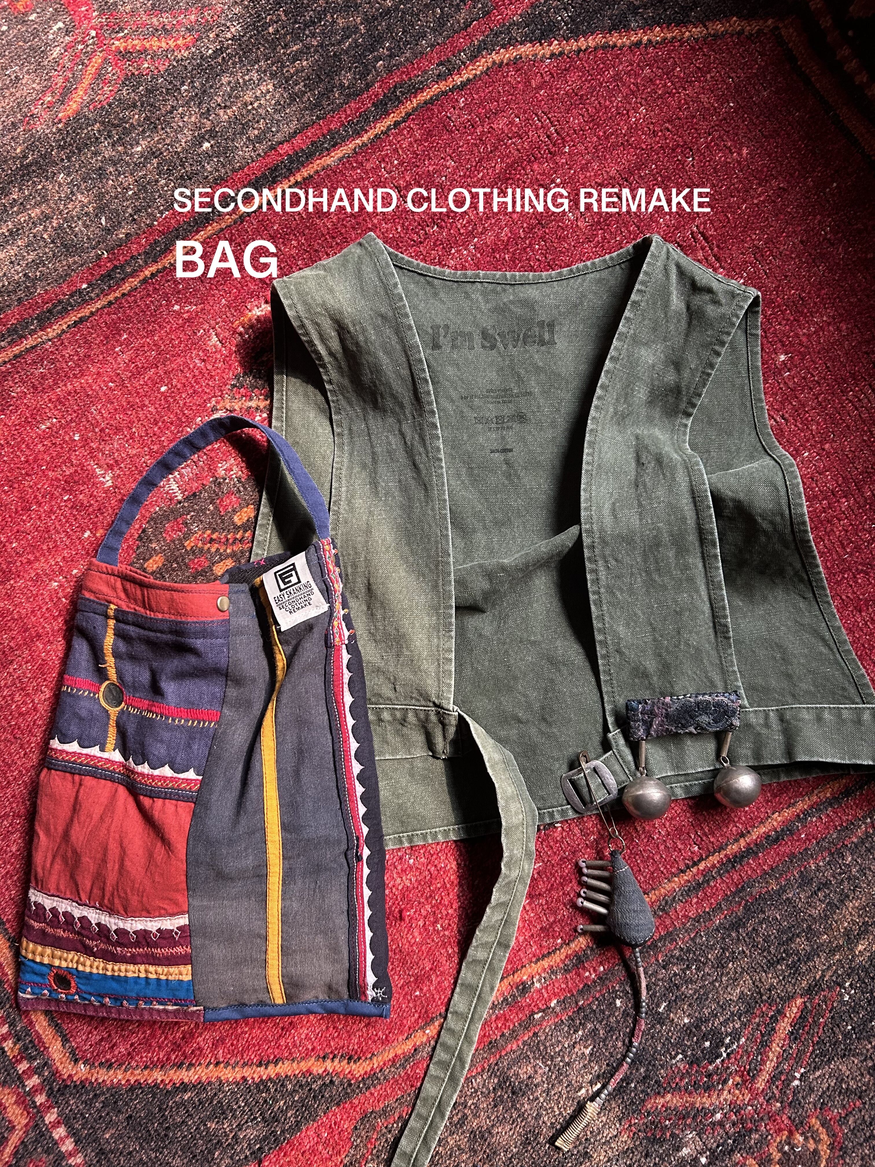 南インドのバンジャラ族の古布刺繍(アンティーク布)を使ったスカートをリメイクし、色々と組み合わせて、普段使いで楽しんでいただけるエネルギッシュなBAGを製作しました。ミニBAGです。
