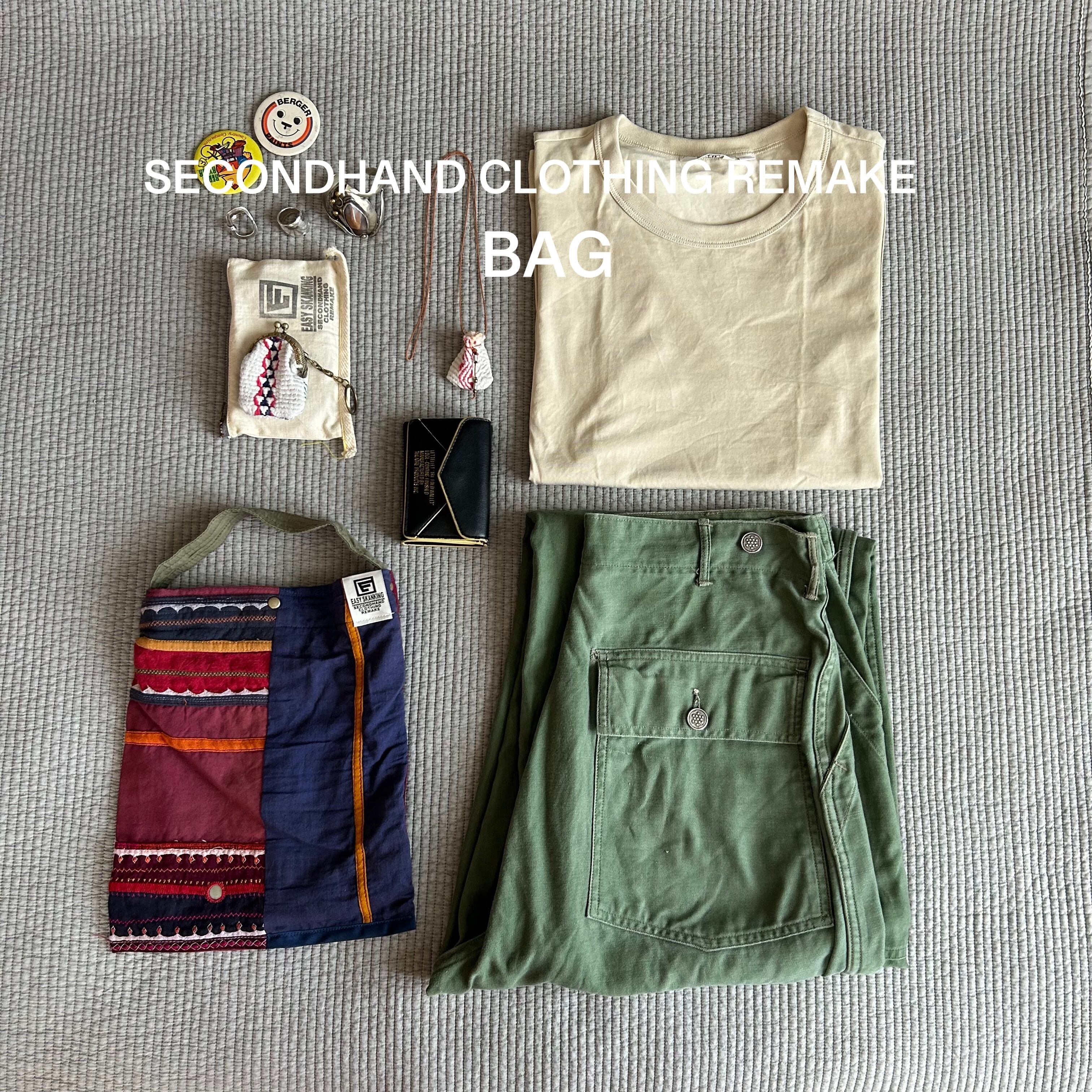 ▶︎持ち手にはエプロン製作時に出てくる古着の生地を採用