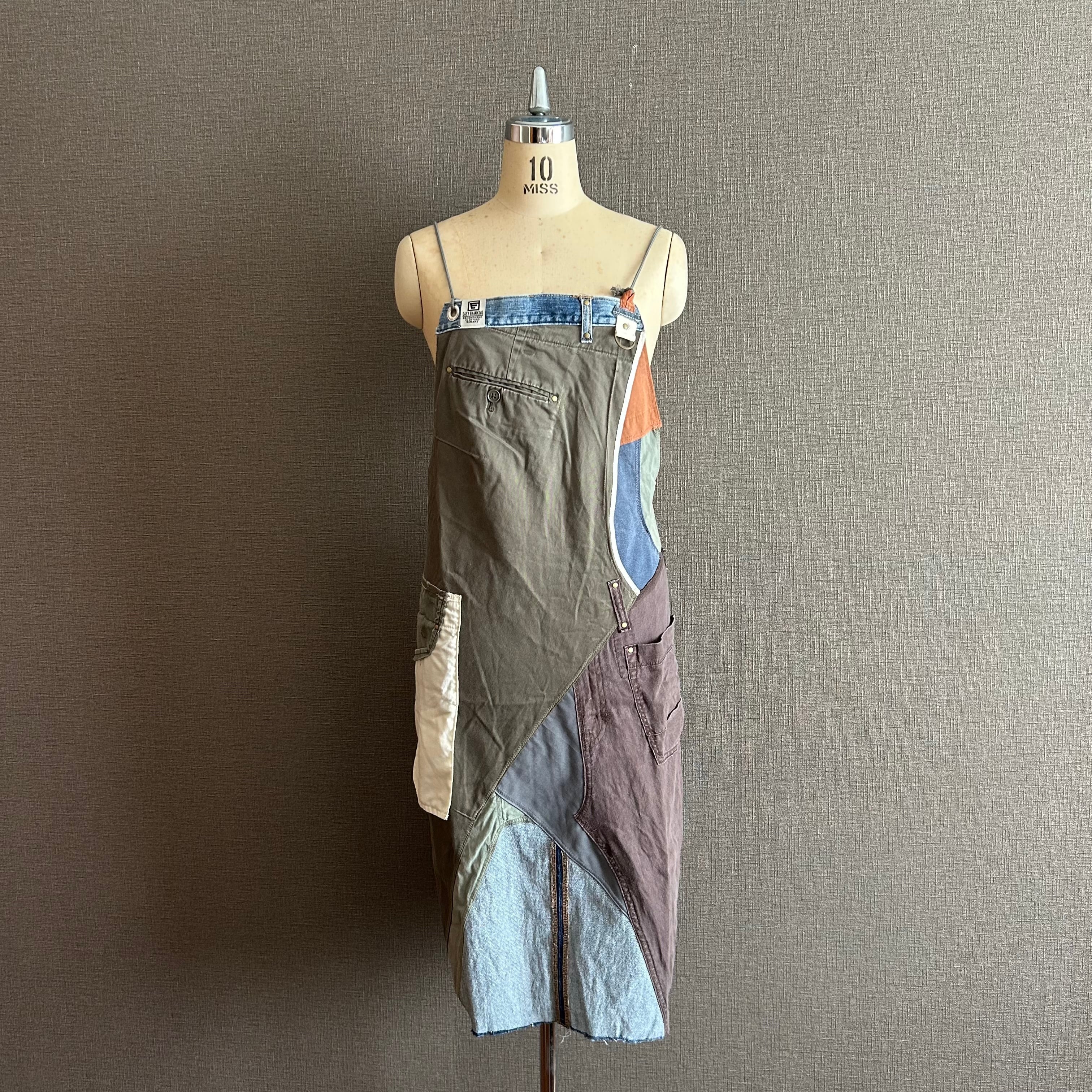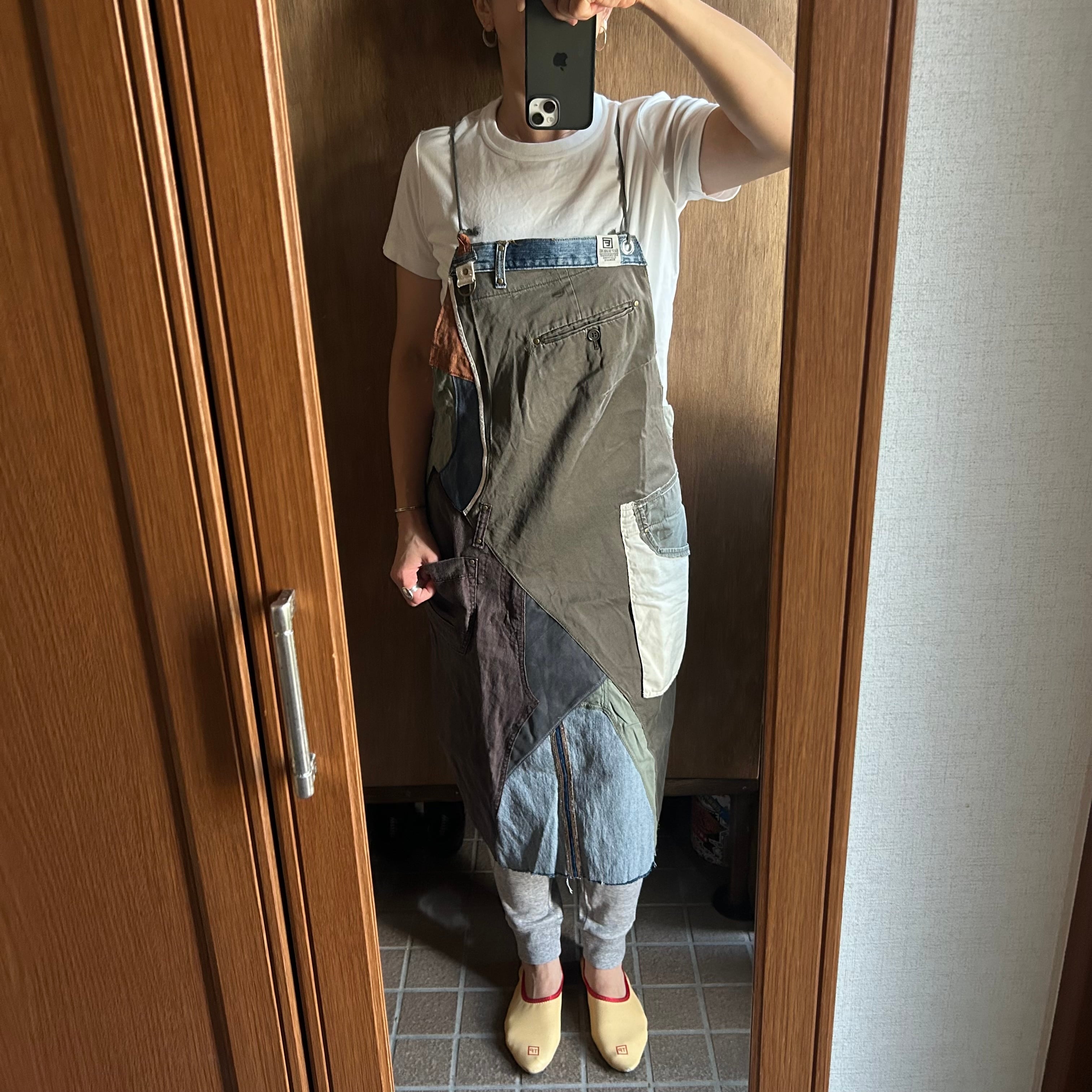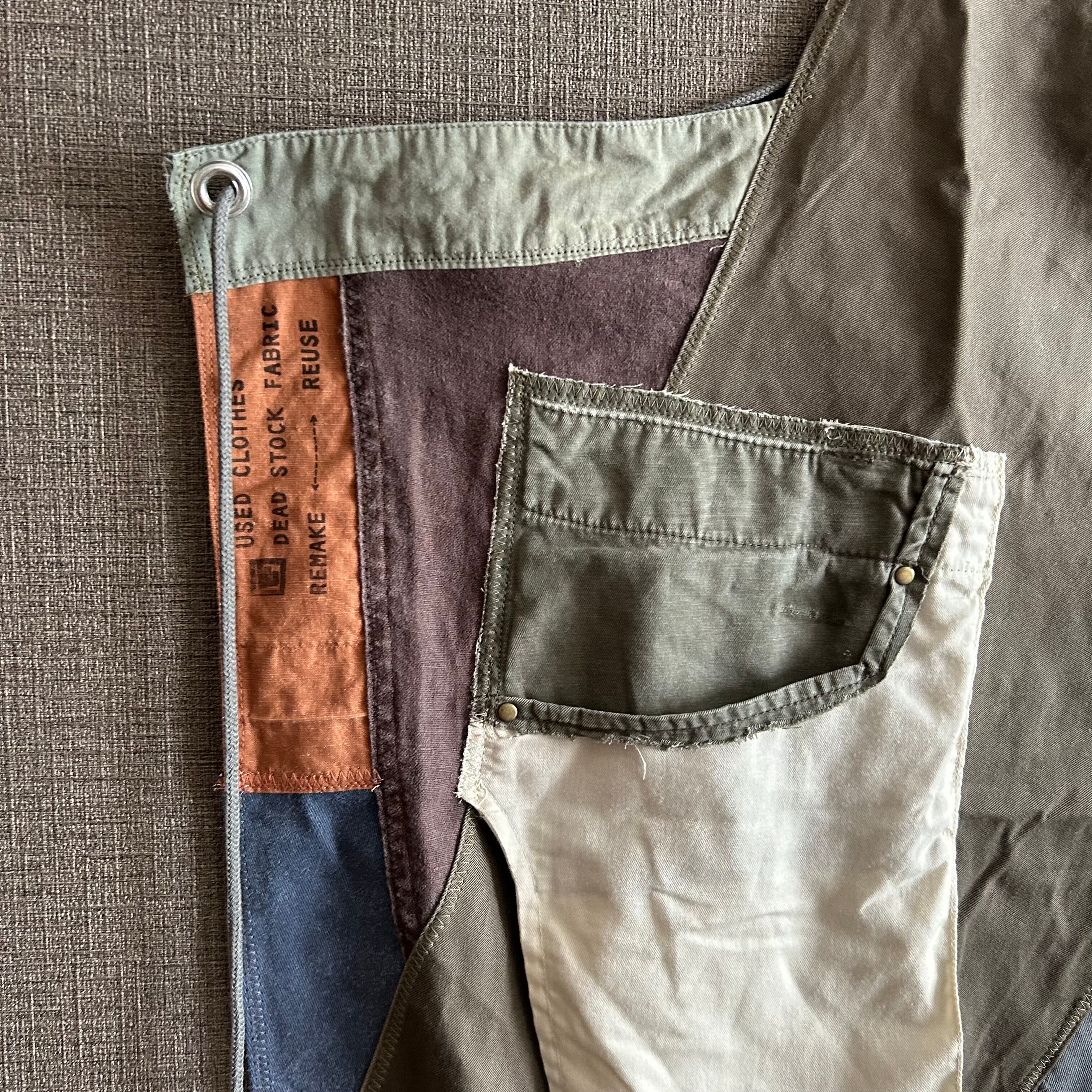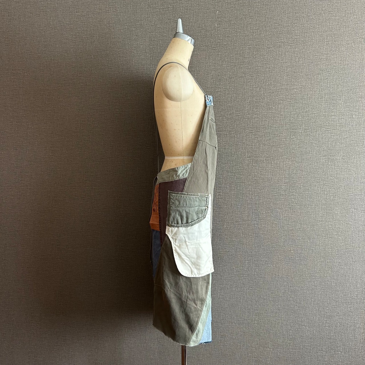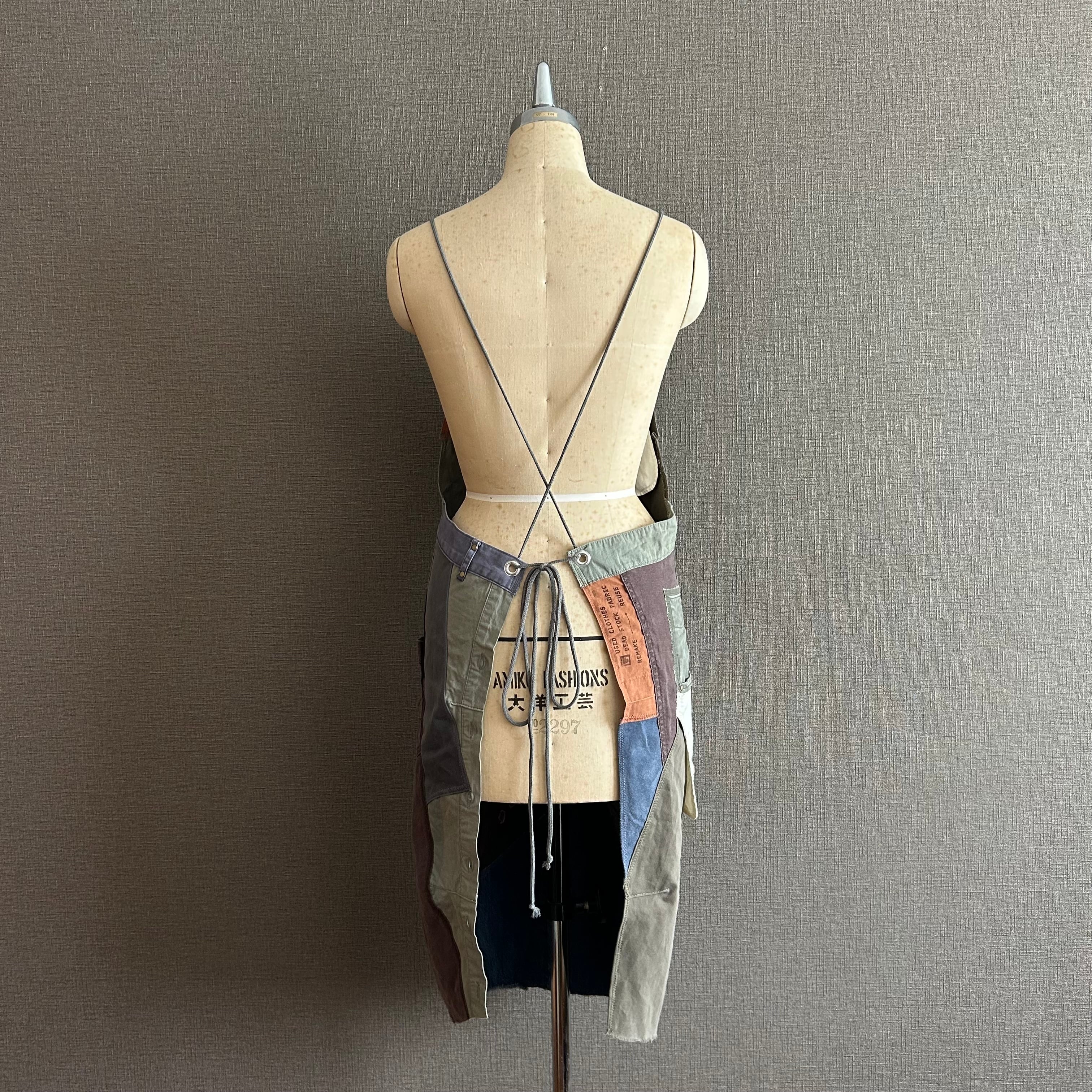 古着 や ミリタリー ファブリック、を解体し、パッチワーク のように一つ一つ丁寧に縫い合わせた リメイクエプロン は、まさに 一点物 の魅力を存分に感じさせてくれます。