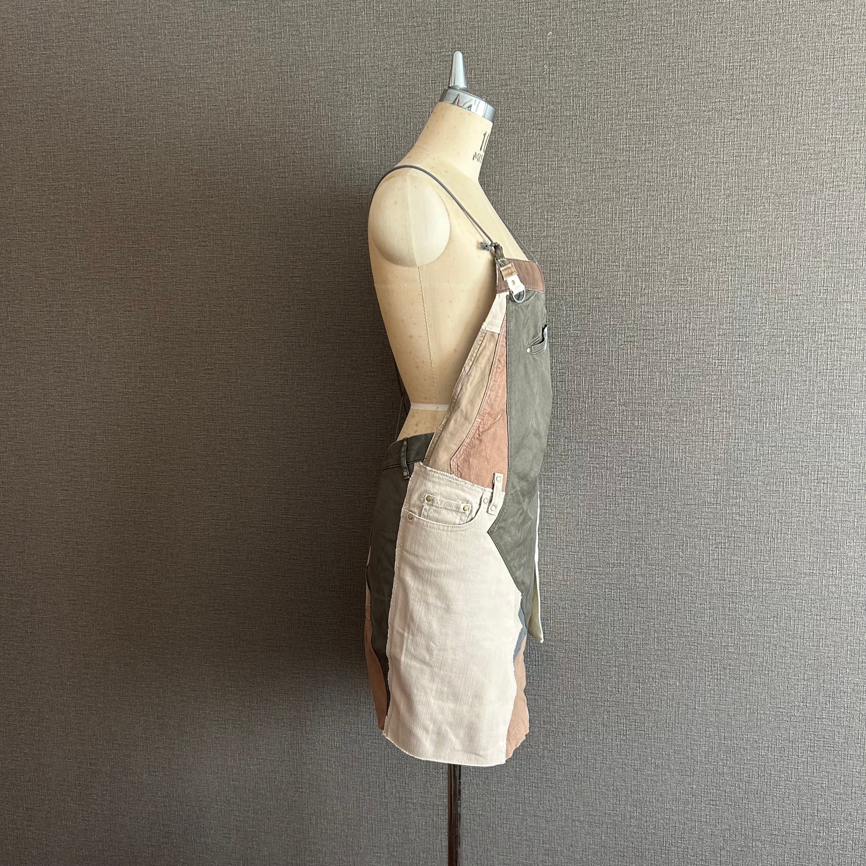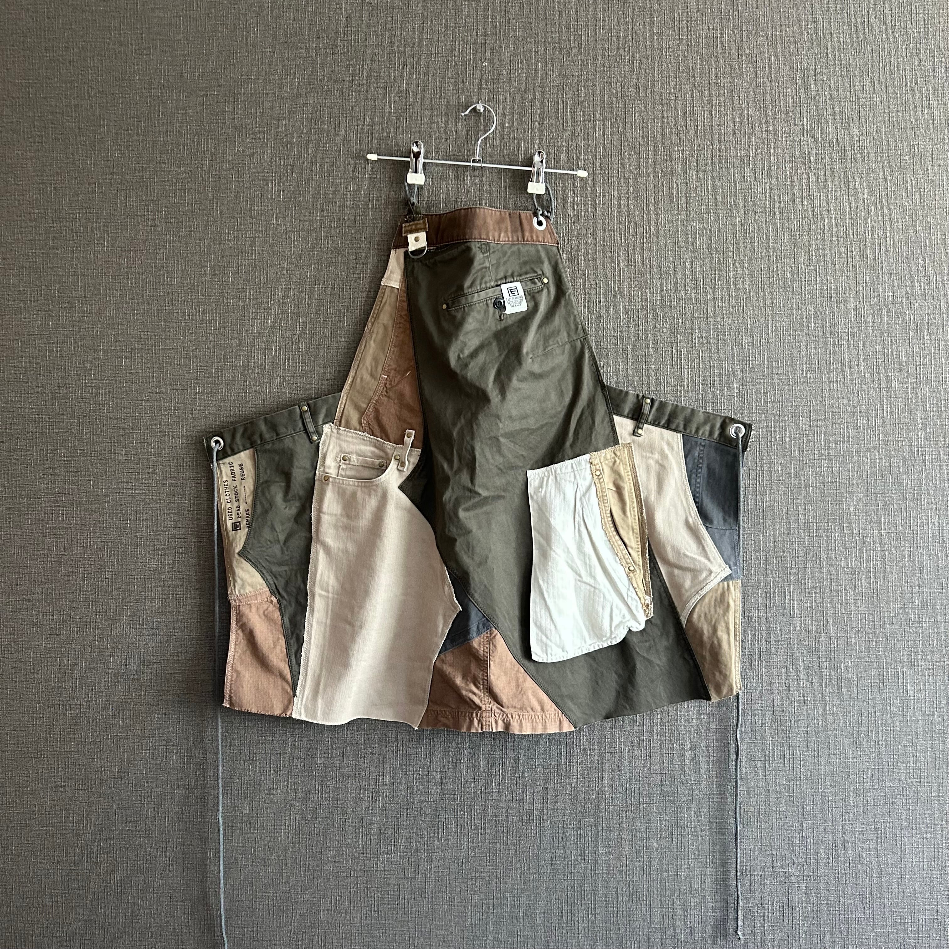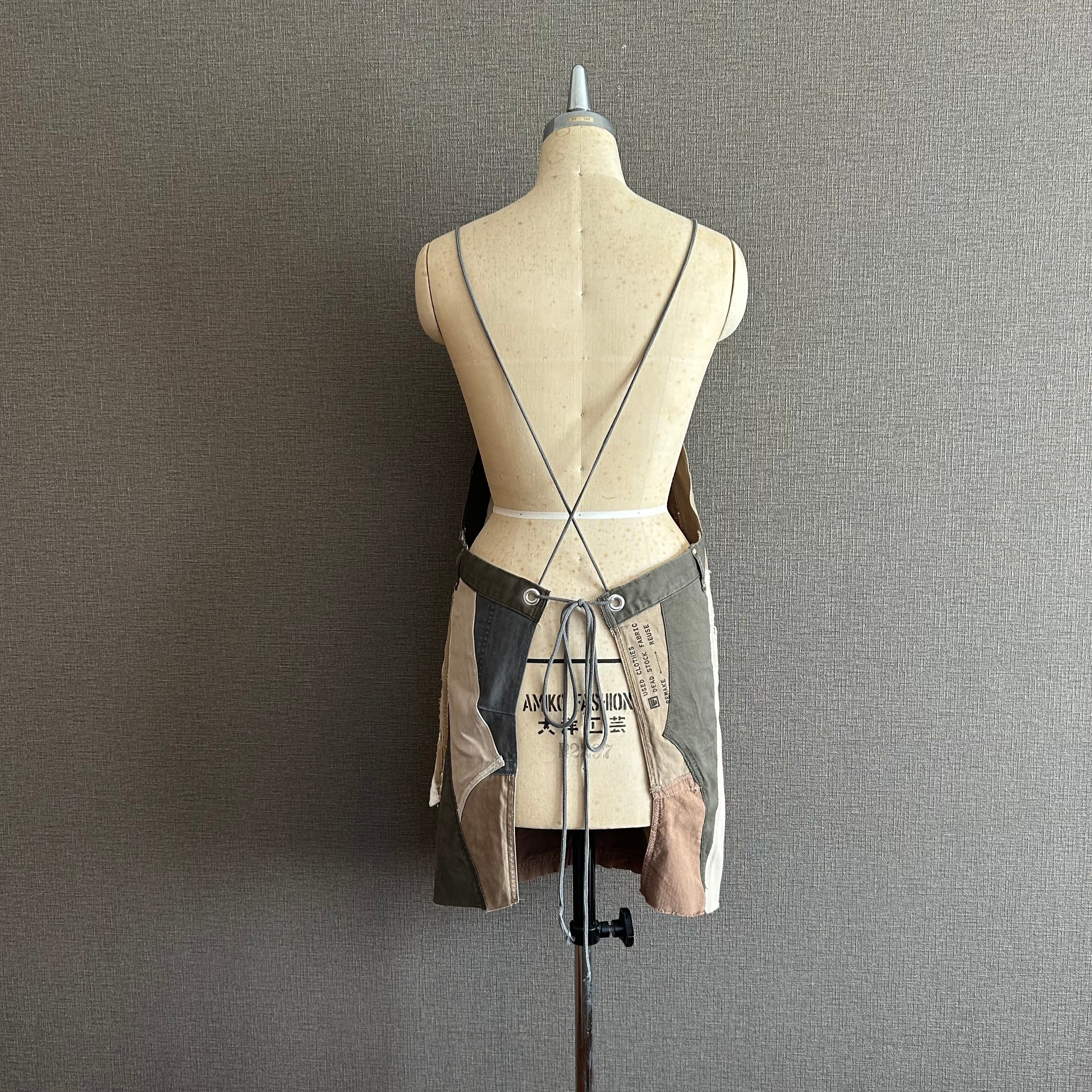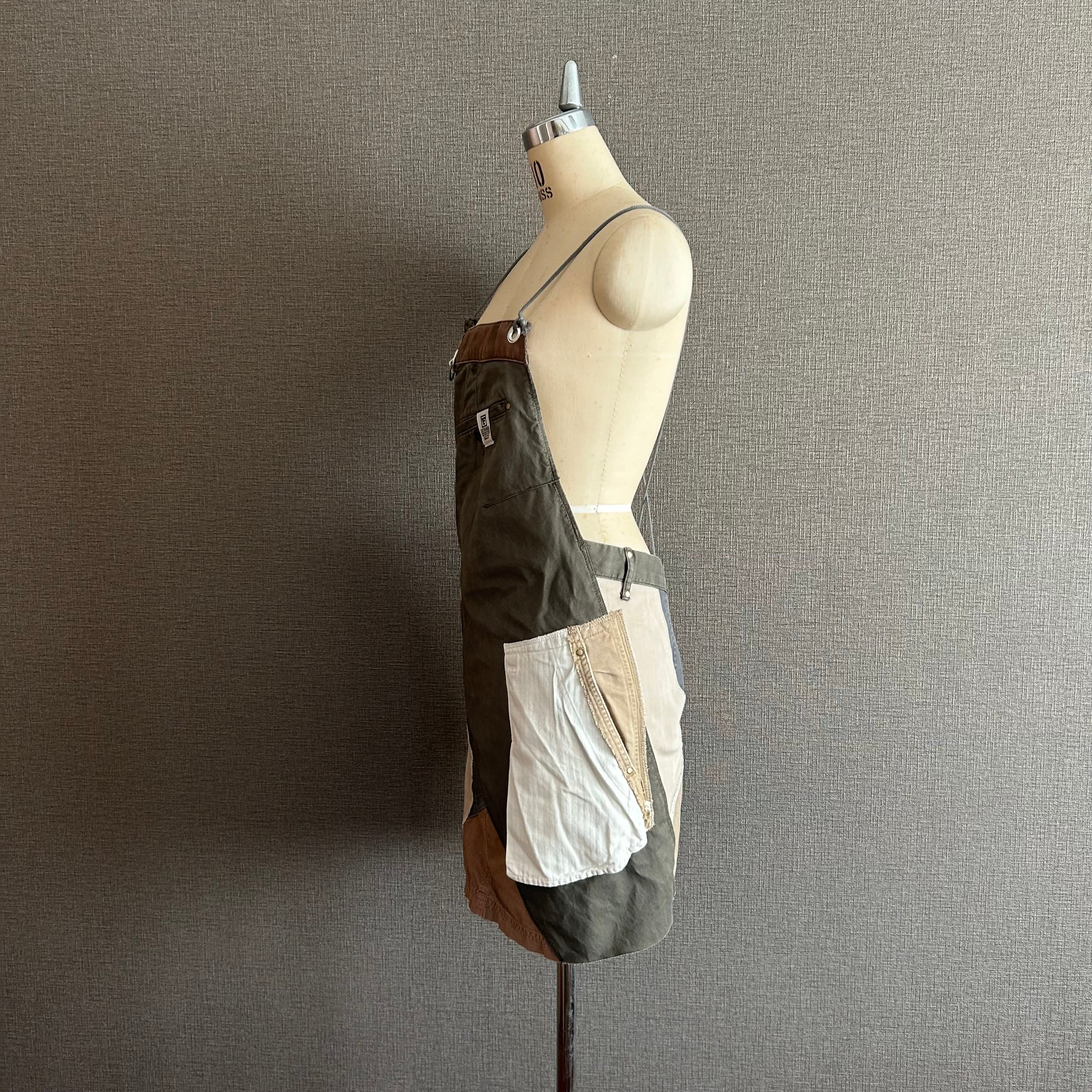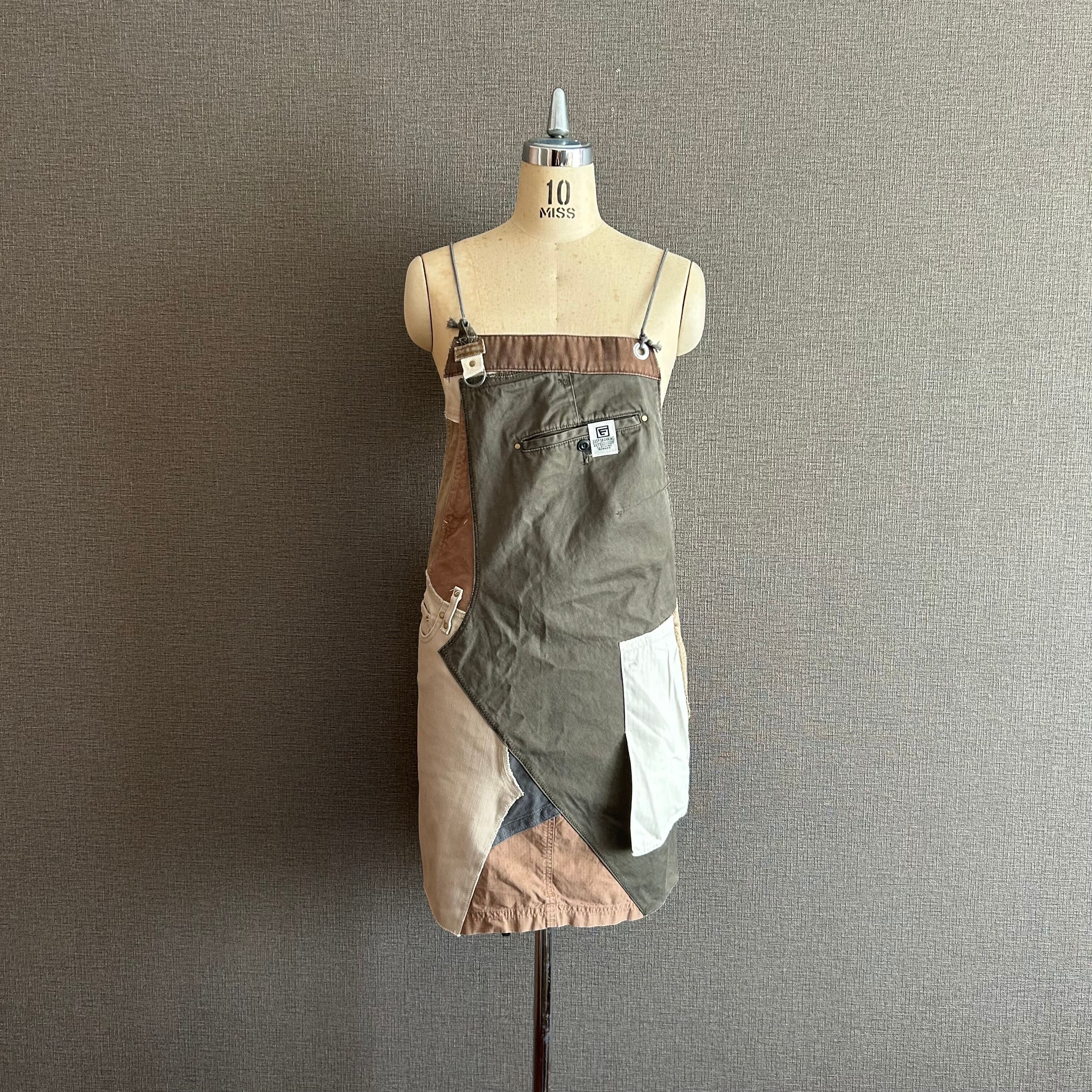 古着 や ミリタリー ファブリック、を解体し、パッチワーク のように一つ一つ丁寧に縫い合わせた リメイクエプロン は、まさに 一点物 の魅力を存分に感じさせてくれます。