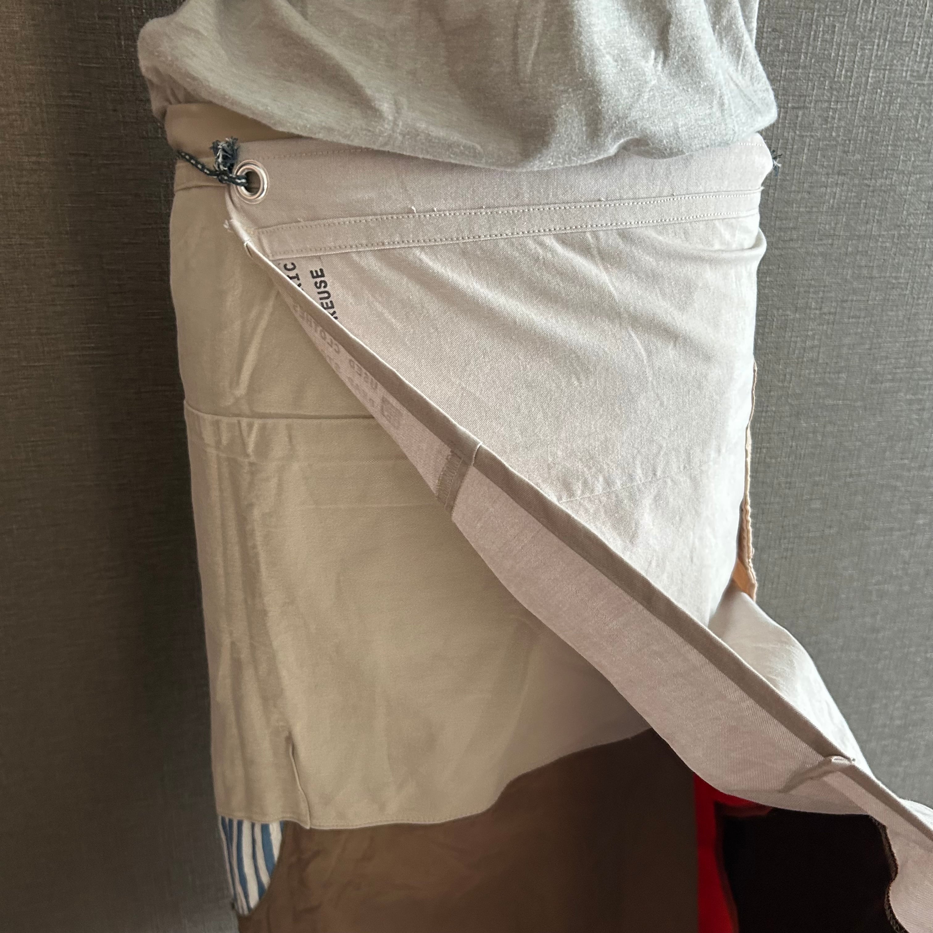 ♦︎前も後ろもスリットになる腰巻きエプロン。