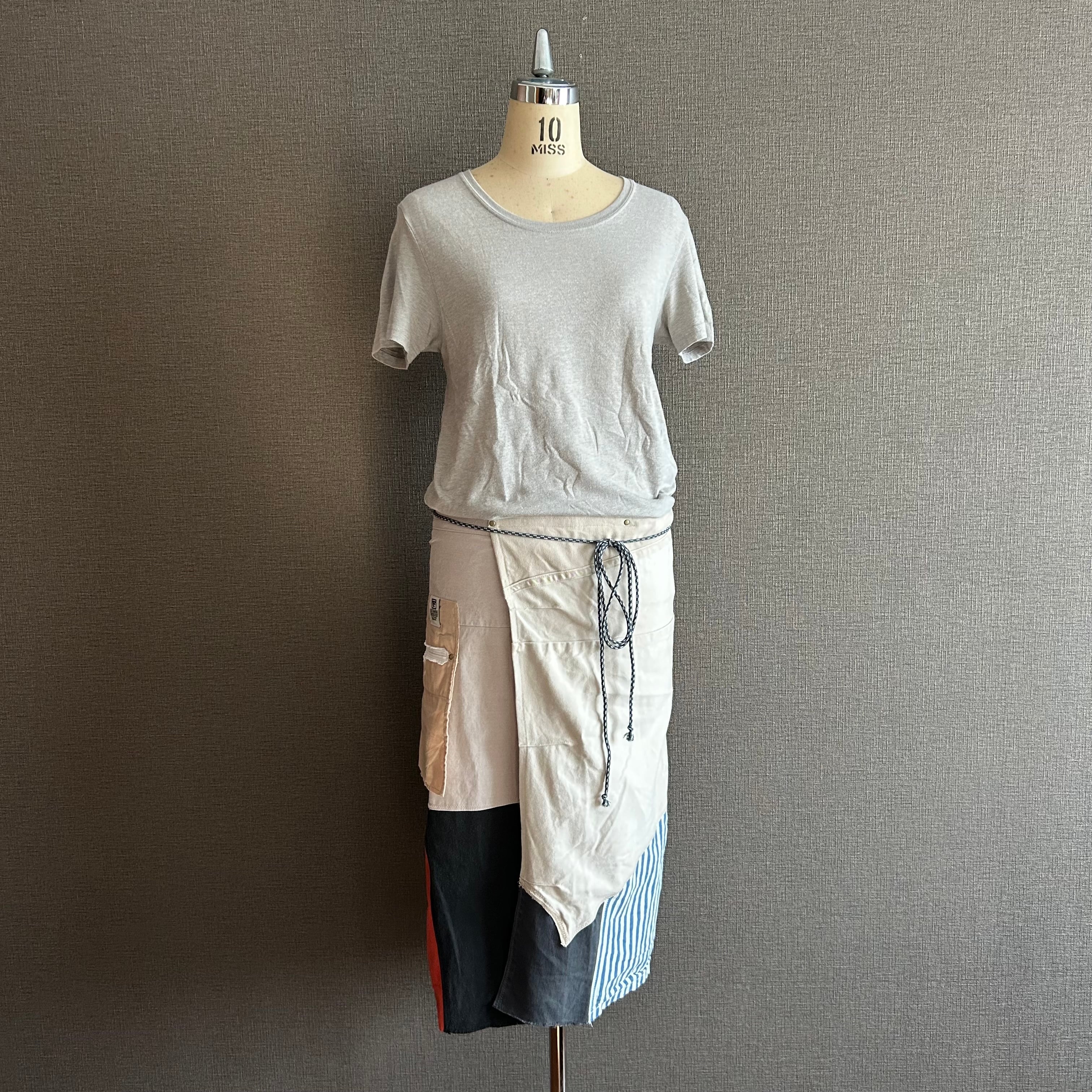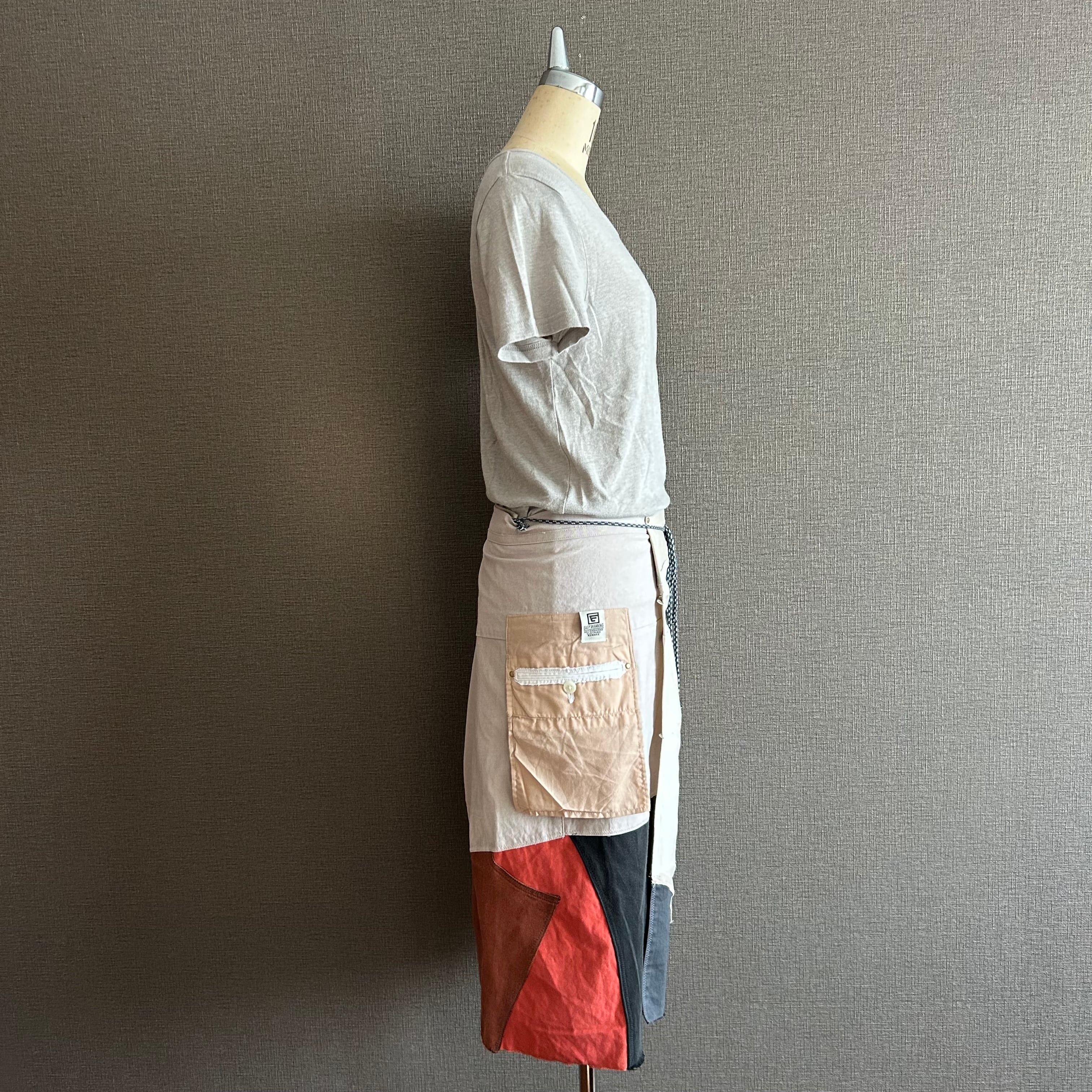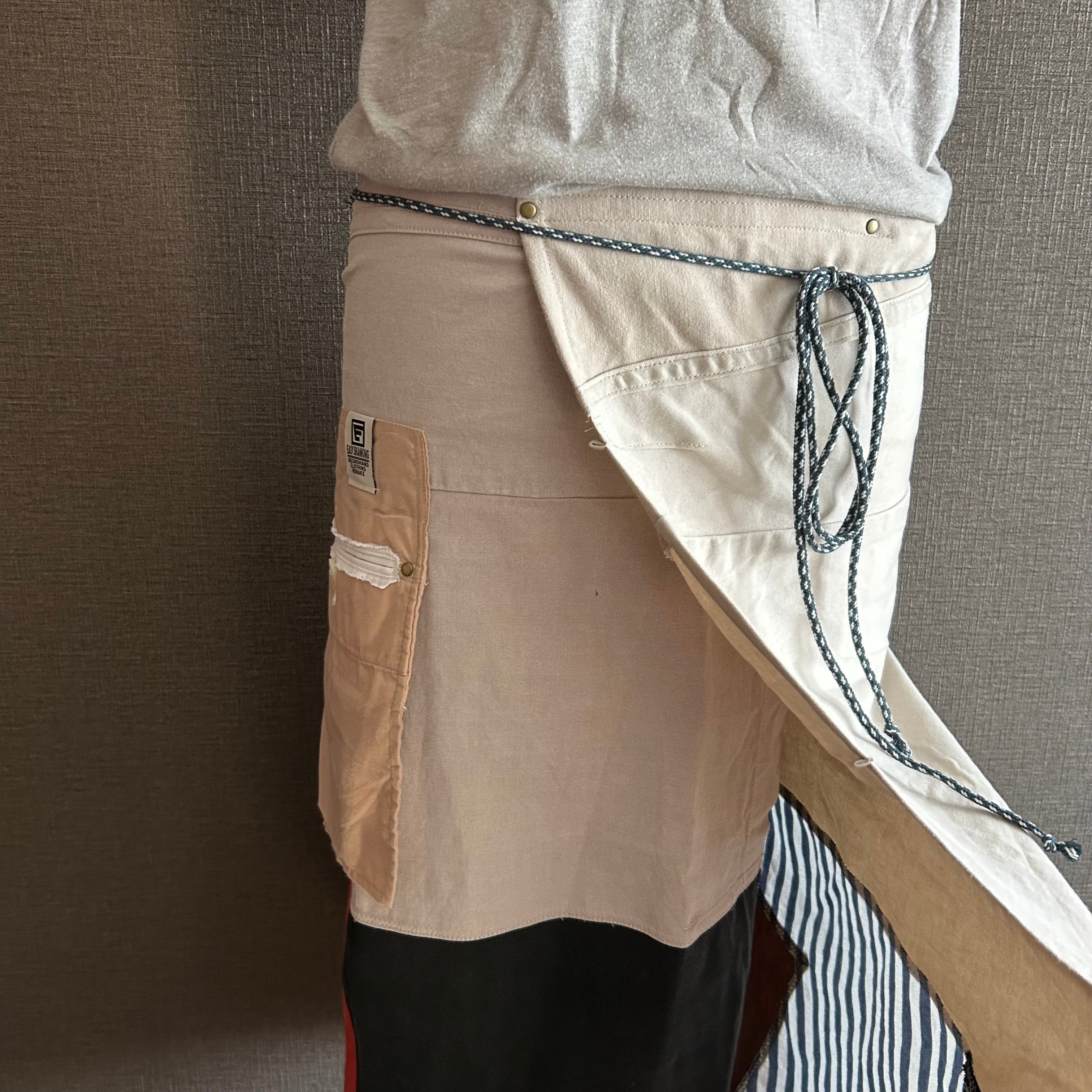 古着 や ミリタリー ファブリック、を解体し、パッチワーク のように一つ一つ丁寧に縫い合わせた リメイクエプロン は、まさに 一点物 の魅力を存分に感じさせてくれます。