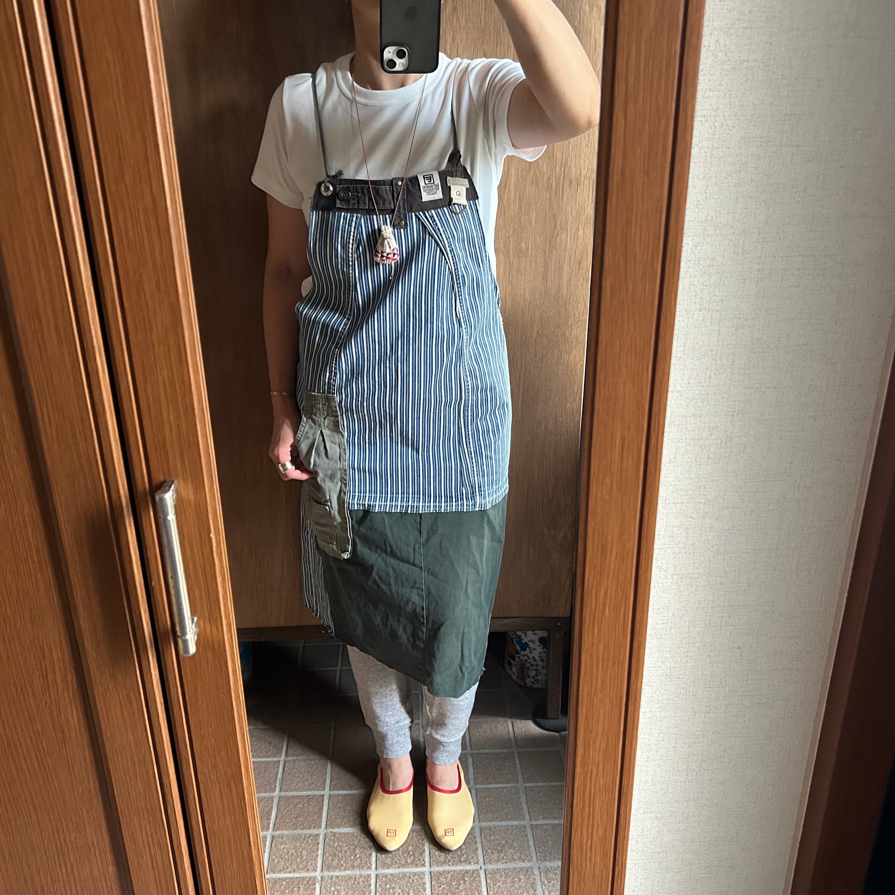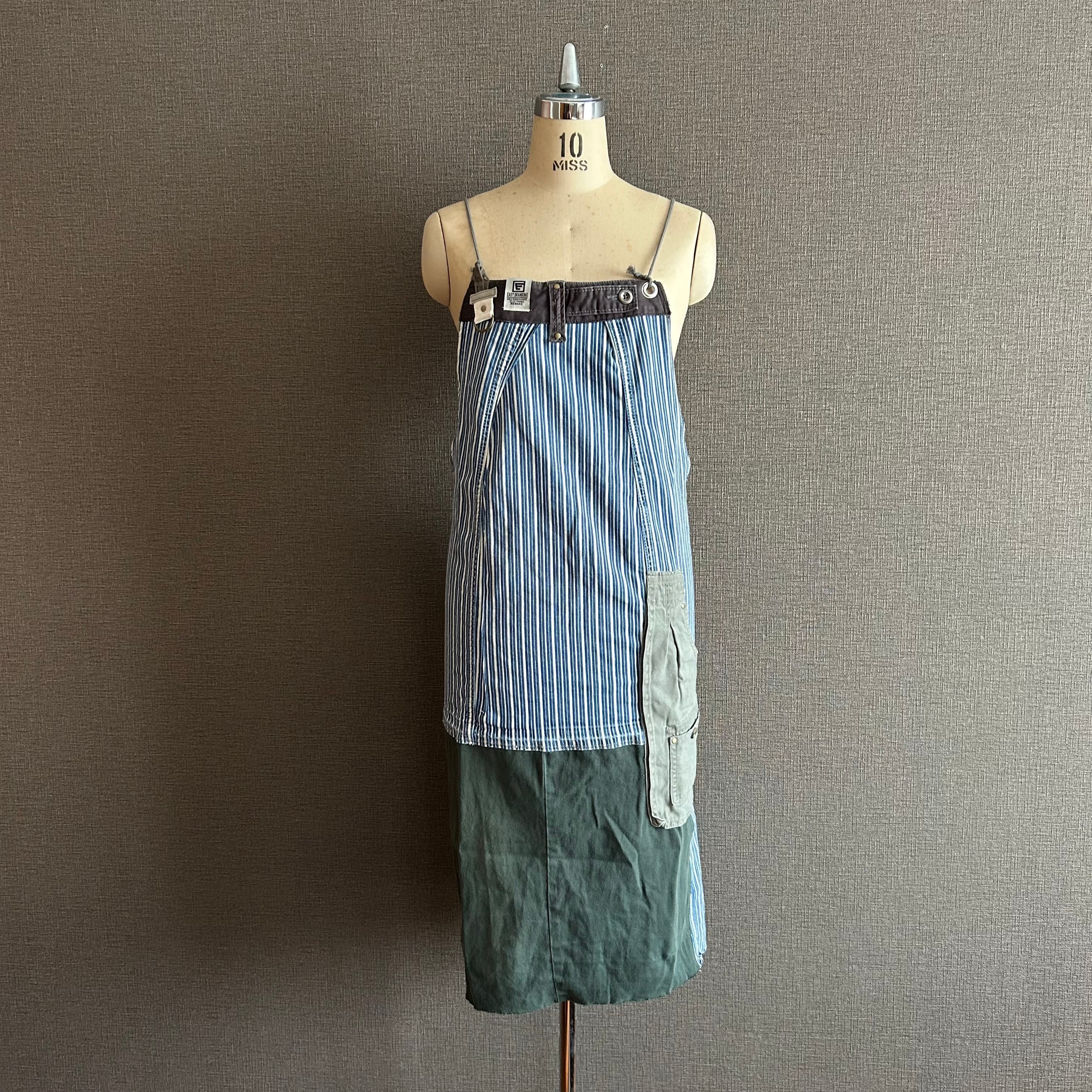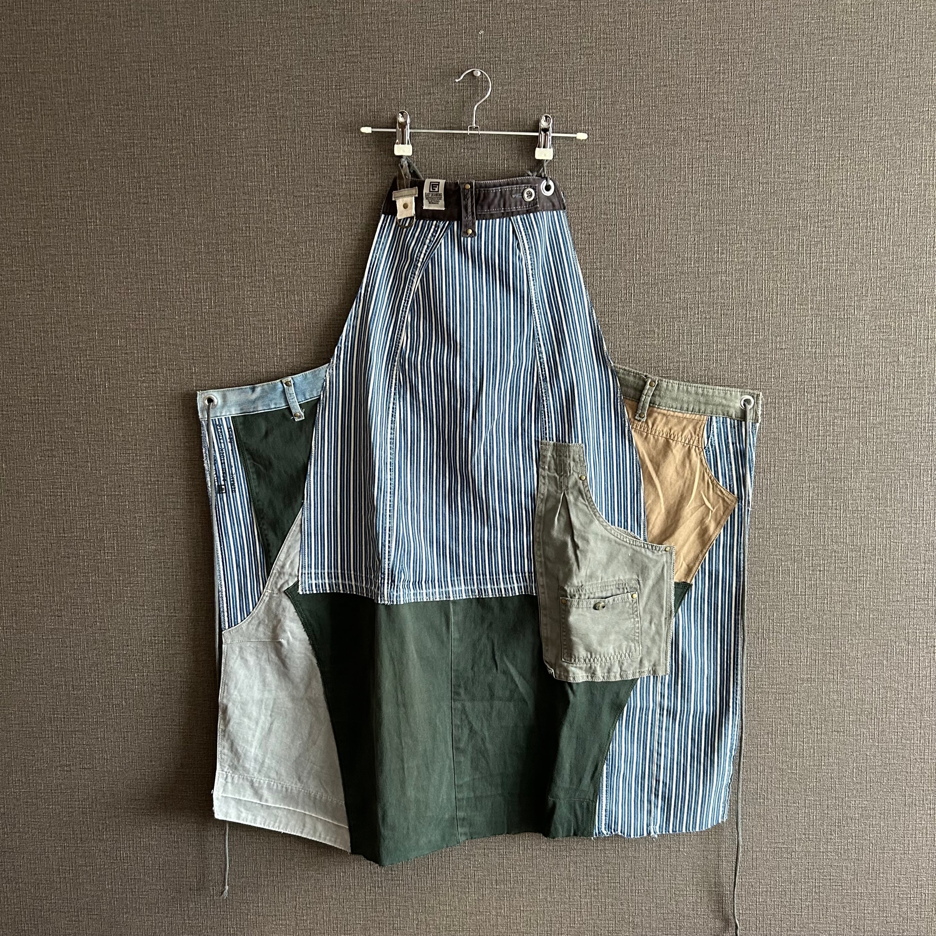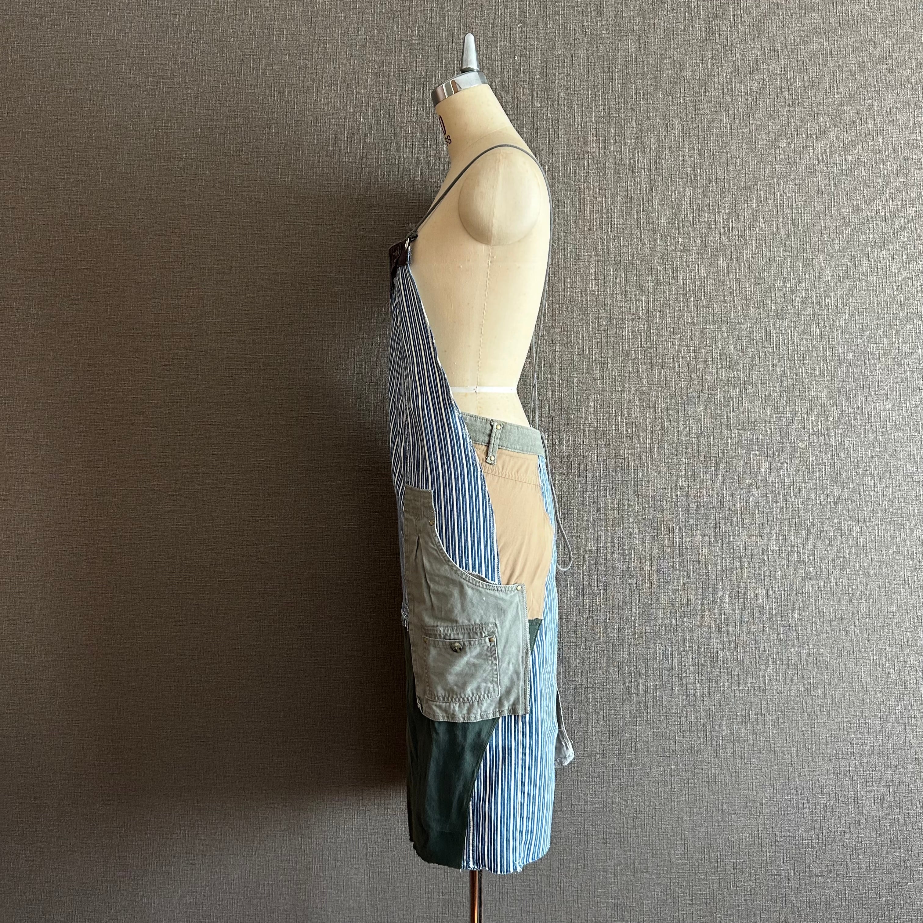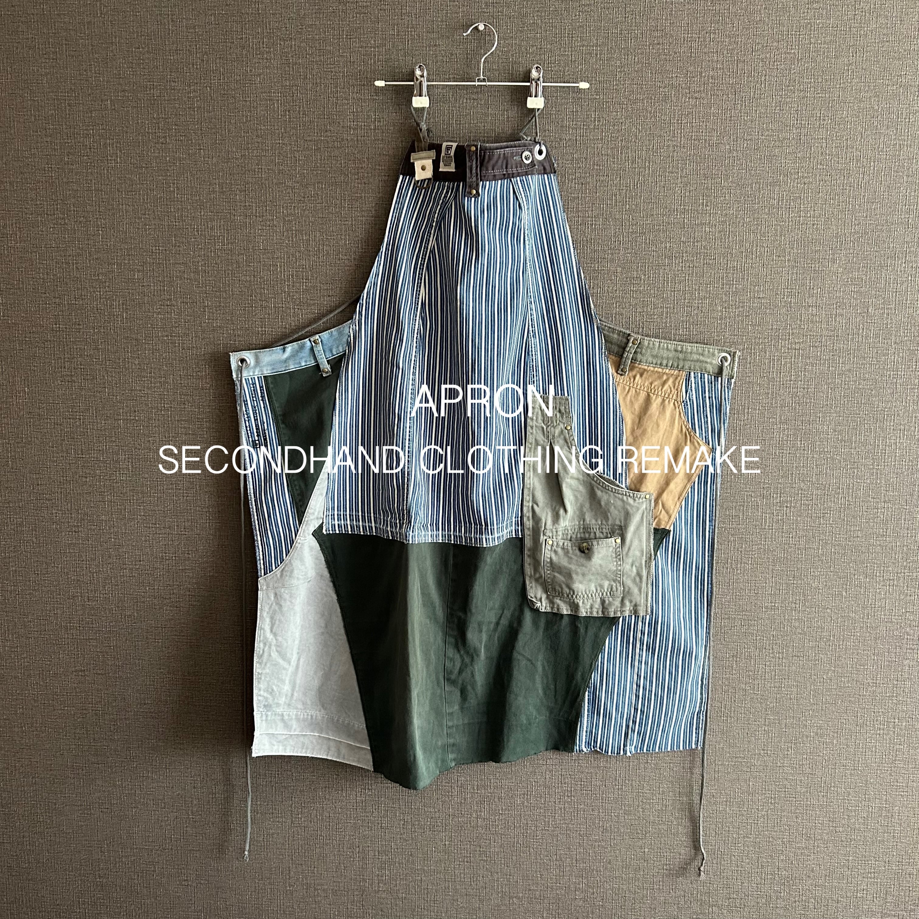 古着 や ミリタリー ファブリック、を解体し、パッチワーク のように一つ一つ丁寧に縫い合わせた リメイクエプロン は、まさに 一点物 の魅力を存分に感じさせてくれます。