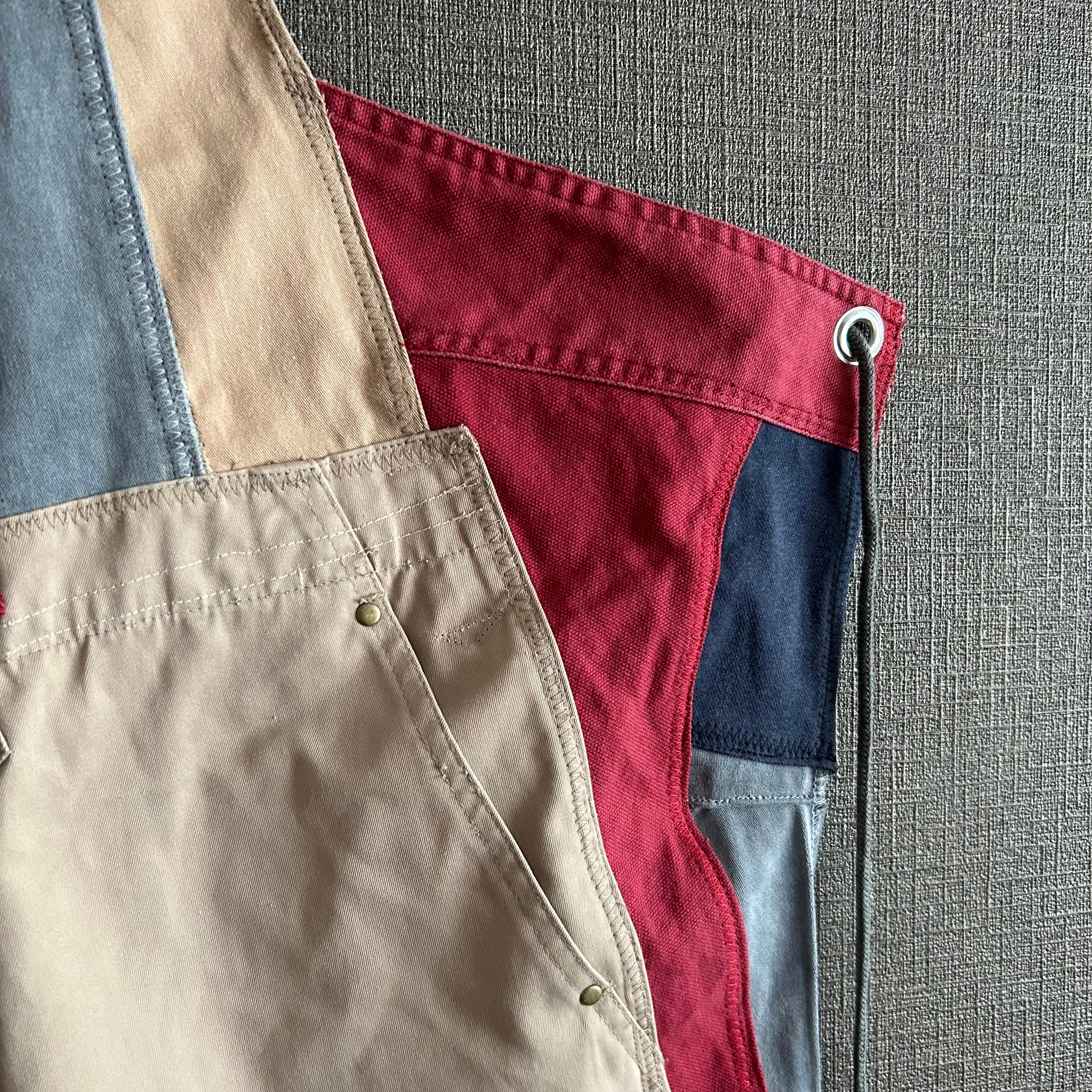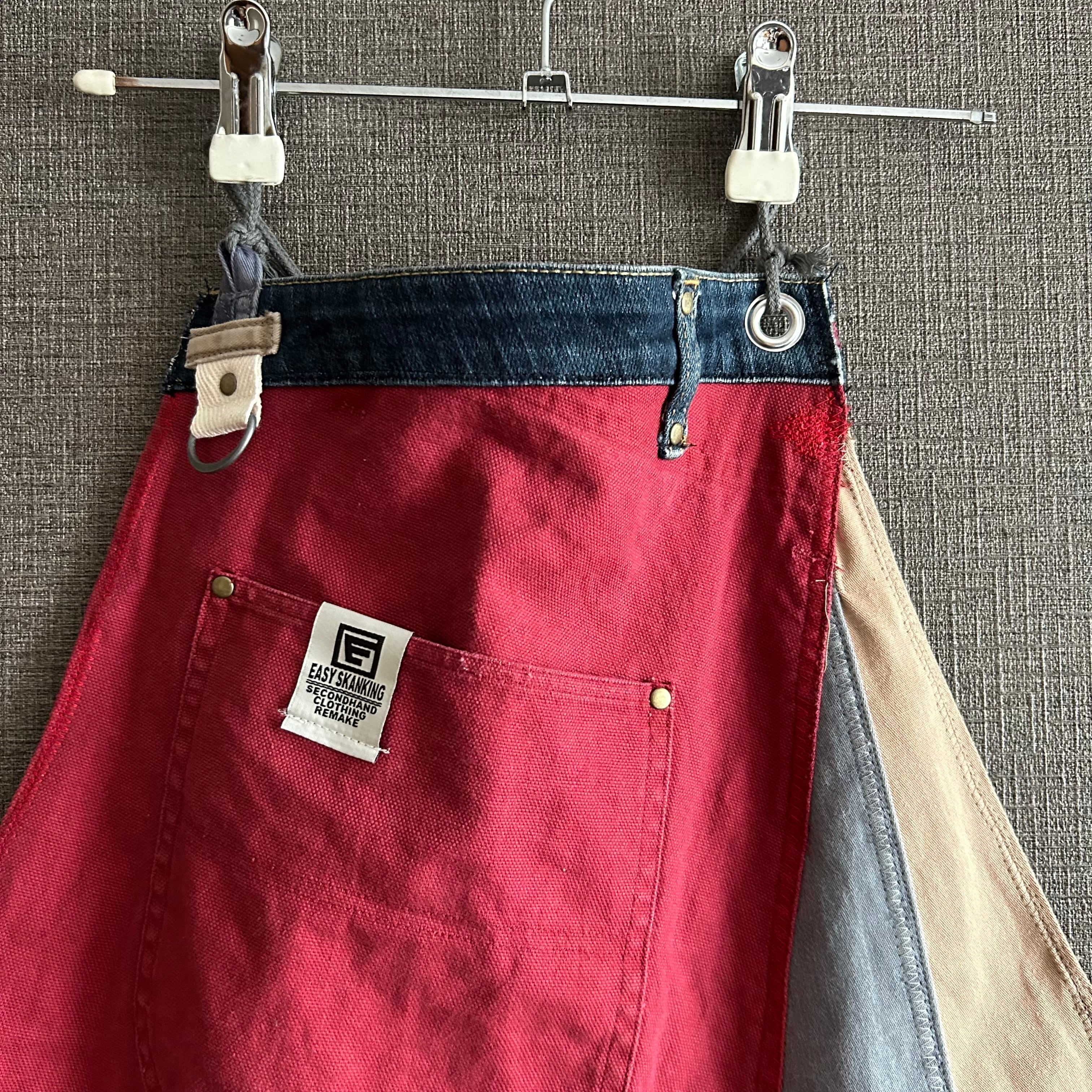 Dismantled from vintage clothing and military fabrics, each piece is meticulously sewn together like patchwork to create a remade apron that truly embodies the charm of a one-of-a-kind piece.