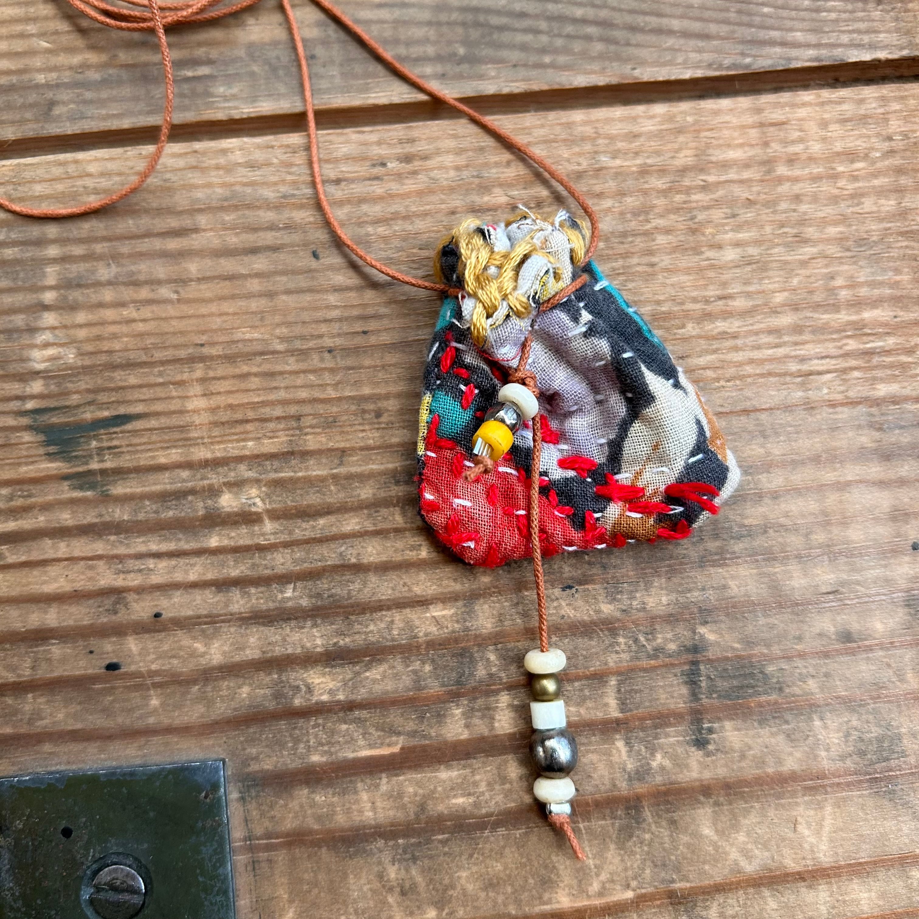 OMAMORI necklace 巾着 ー 4 ー心を整えるOMAMORIネックレス - ヴィンテージカンタキルト巾着