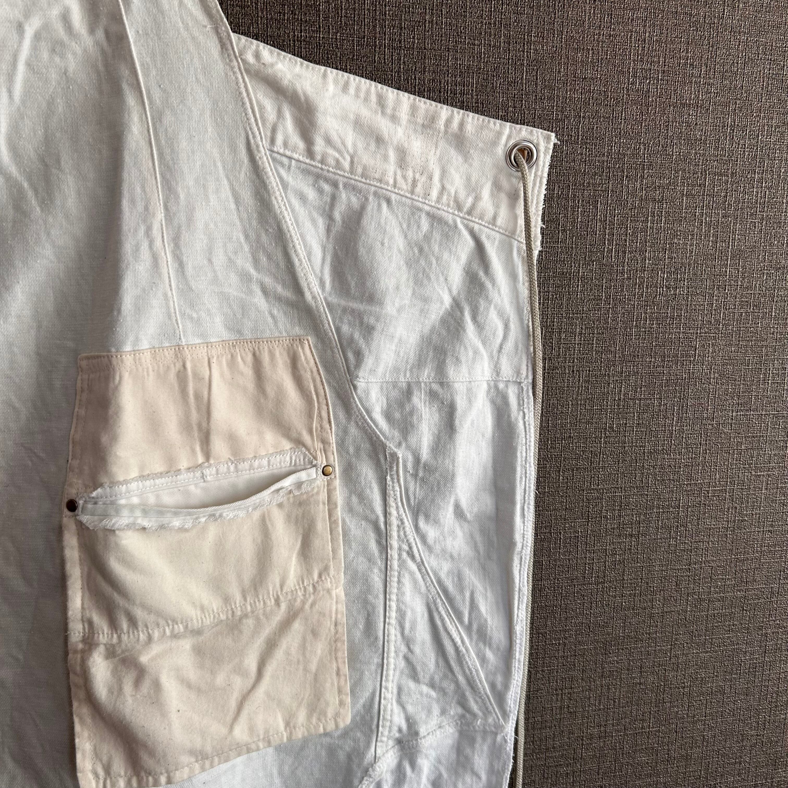Dismantled from secondhand clothing remake and military fabrics, each piece is meticulously sewn together like patchwork to create a remade apron that truly embodies the charm of a one-of-a-kind piece.