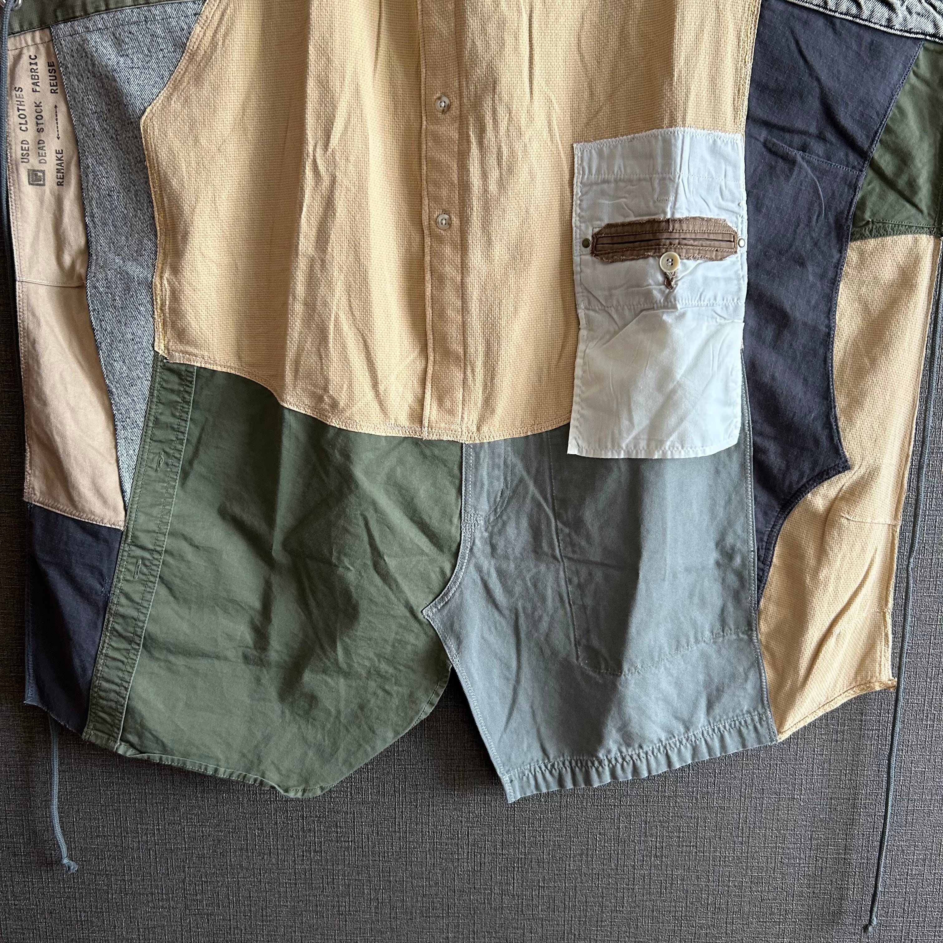 使い込むほどに味わいが増し、経年変化を楽しめるのも魅力。ハンドメイドならではの温もりと、アップサイクルの要素がたっぷりと詰まった特別な一枚です。