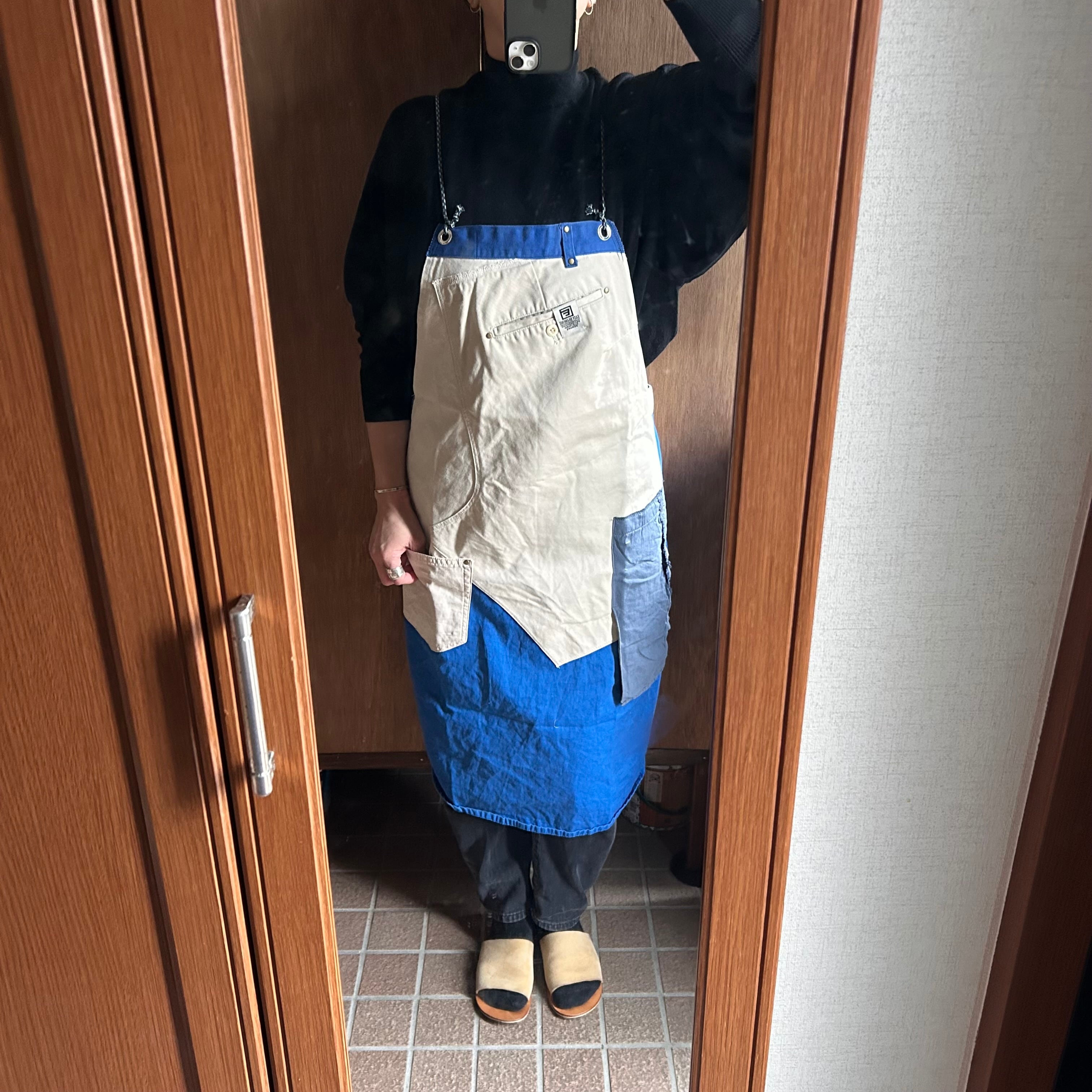 古着 や ミリタリー ファブリック、を解体し、パッチワーク のように一つ一つ丁寧に縫い合わせた リメイクエプロン は、まさに 一点物 の魅力を存分に感じさせてくれます。