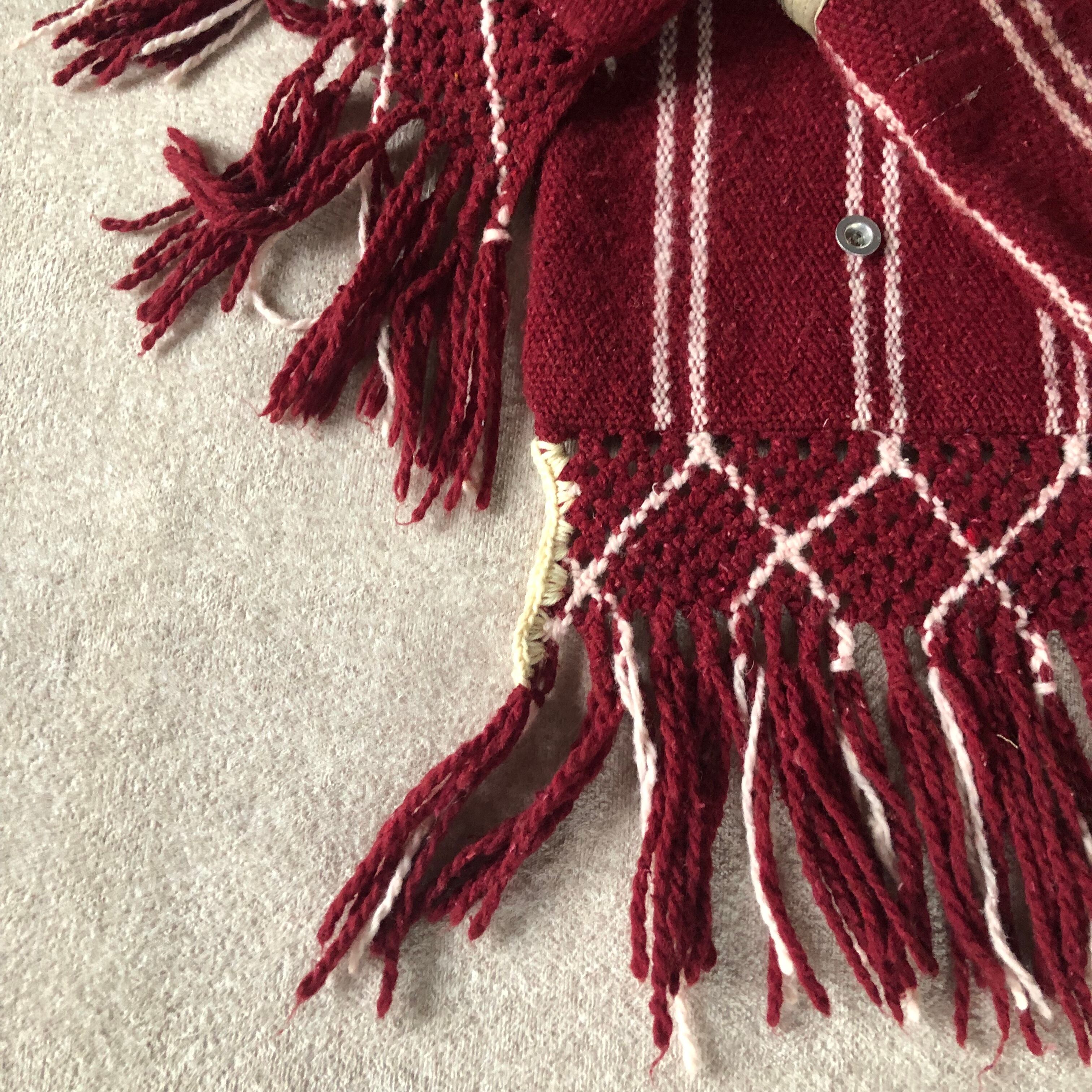 *ヴィンテージのポンチョからのリメイクとなります。毛糸の傷み毛玉などがございます。古着でしたので使用感がございます。それもヴィンテージの味わいの一つとしてお楽しみいただけると幸いです。