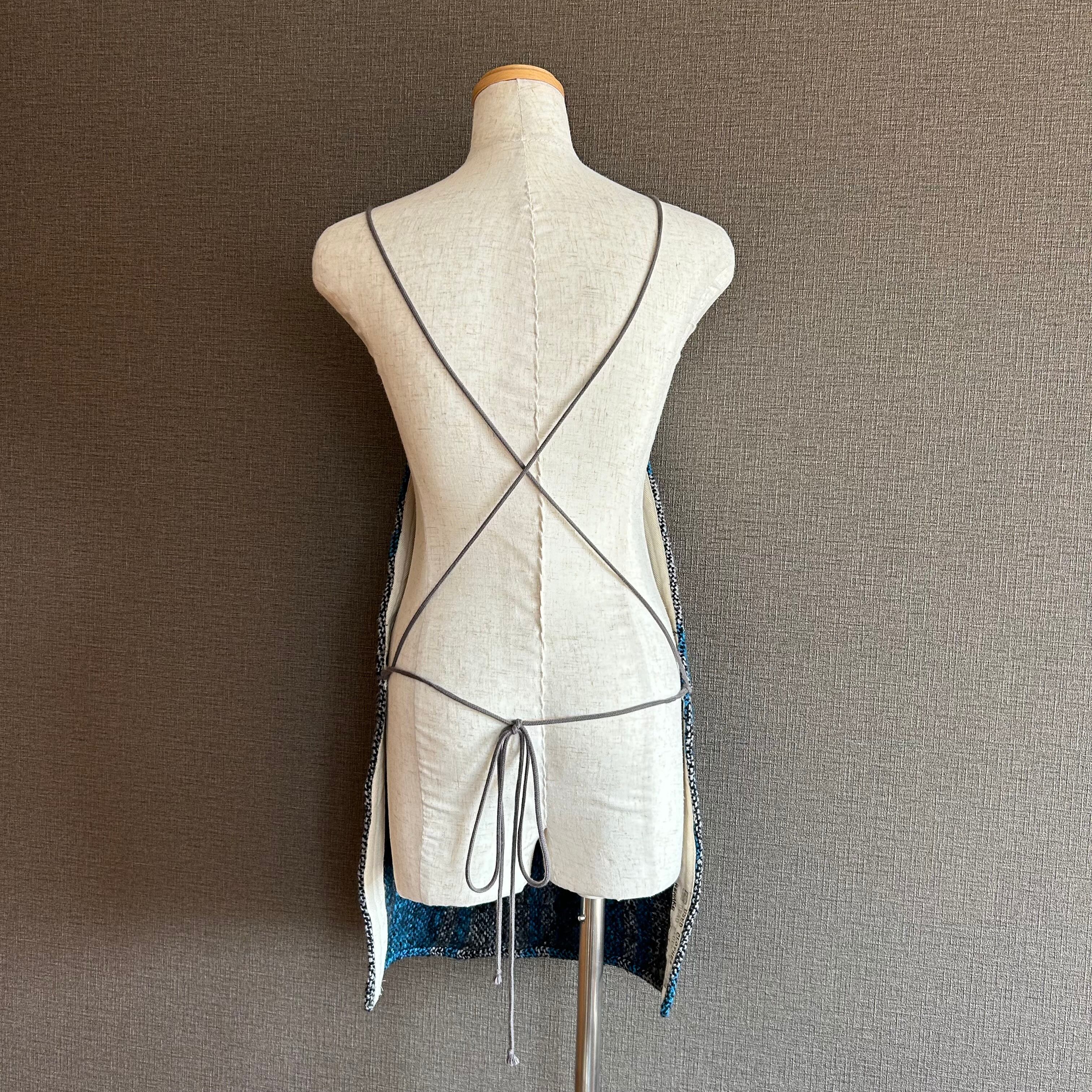 アメリカンヴィンテージでよく見かけるキャンバスワークエプロンのような、短めのちょこっとしたエプロンをイメージして制作。