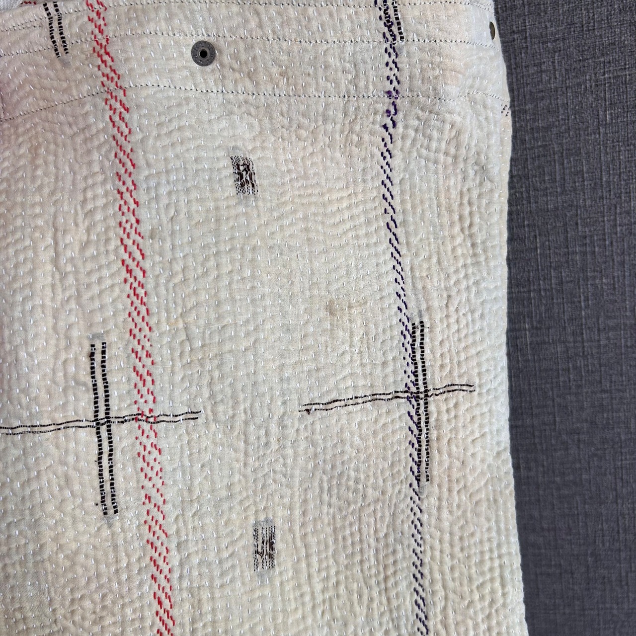古くなったサリーや腰布・ハギレ等を重ね合わせてランニングステッチをしているテキスタイルです。カンタ刺繍とも言います。