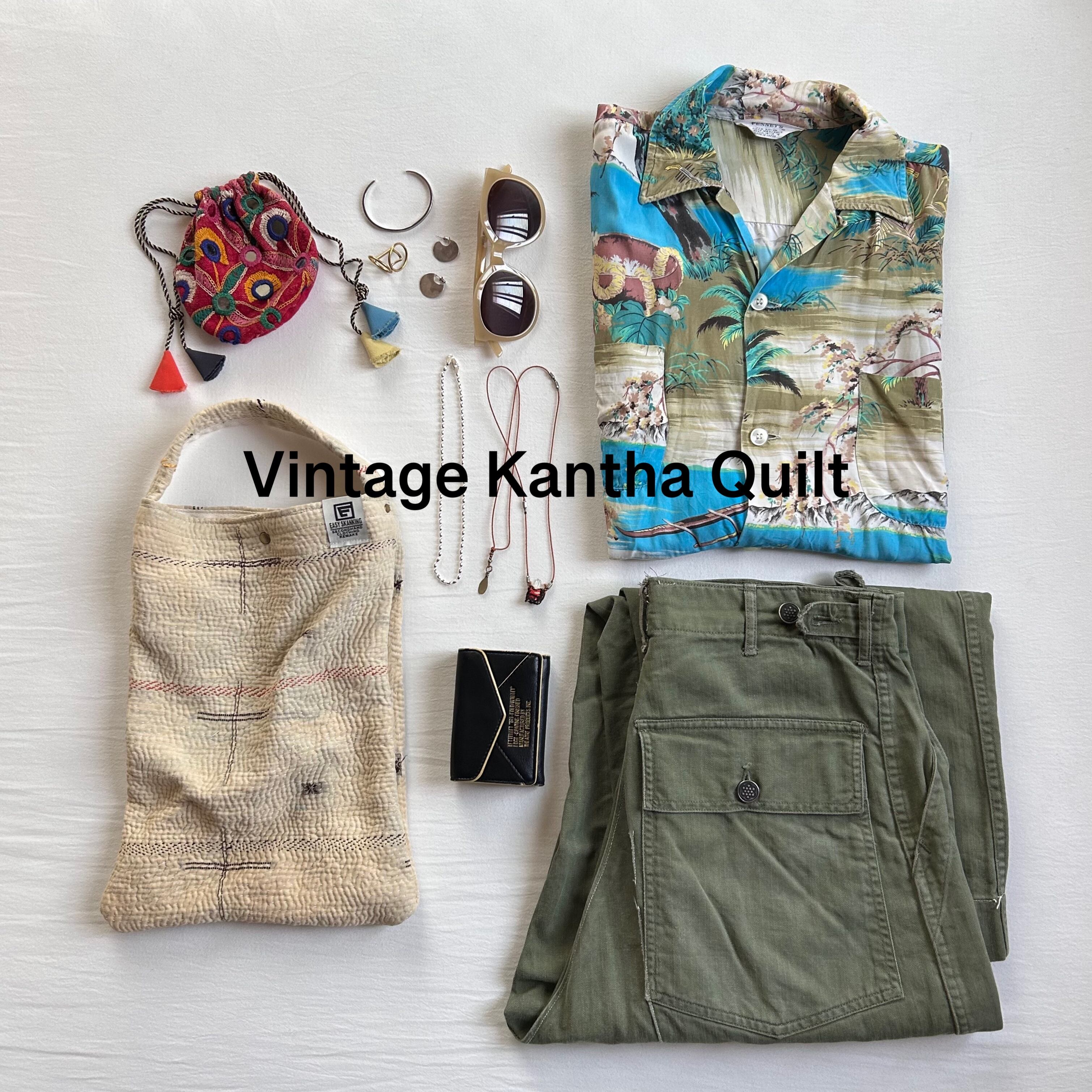 ♦︎カンタキルトの布は、使われていたものが使用されておりますので、シミや汚れ、生地の傷みパッチワークされた箇所などがございます。ラリーされた糸の端がピュッと出ていたりします。それも古布の味わいの一つとしてお楽しみいただけると幸いです。