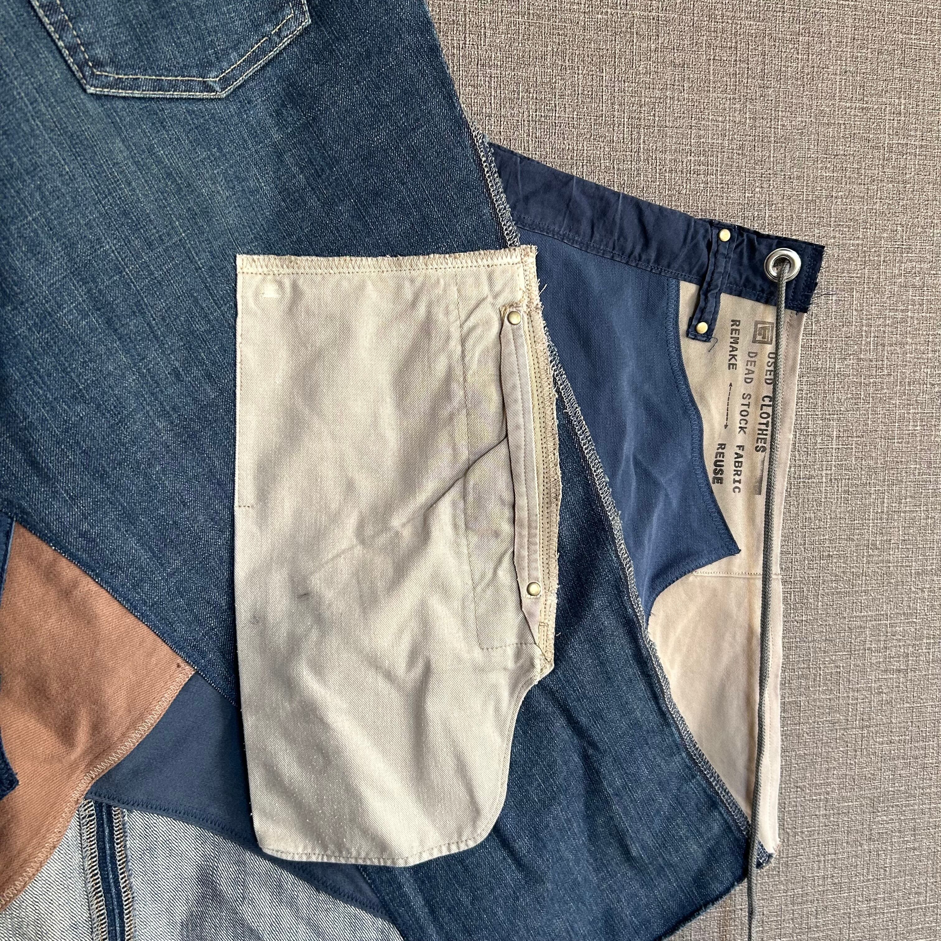 古着を解体し、パッチワークのように一つ一つ丁寧に縫い合わせたこのデザインは、まさに一点物の魅力を存分に感じさせてくれます。