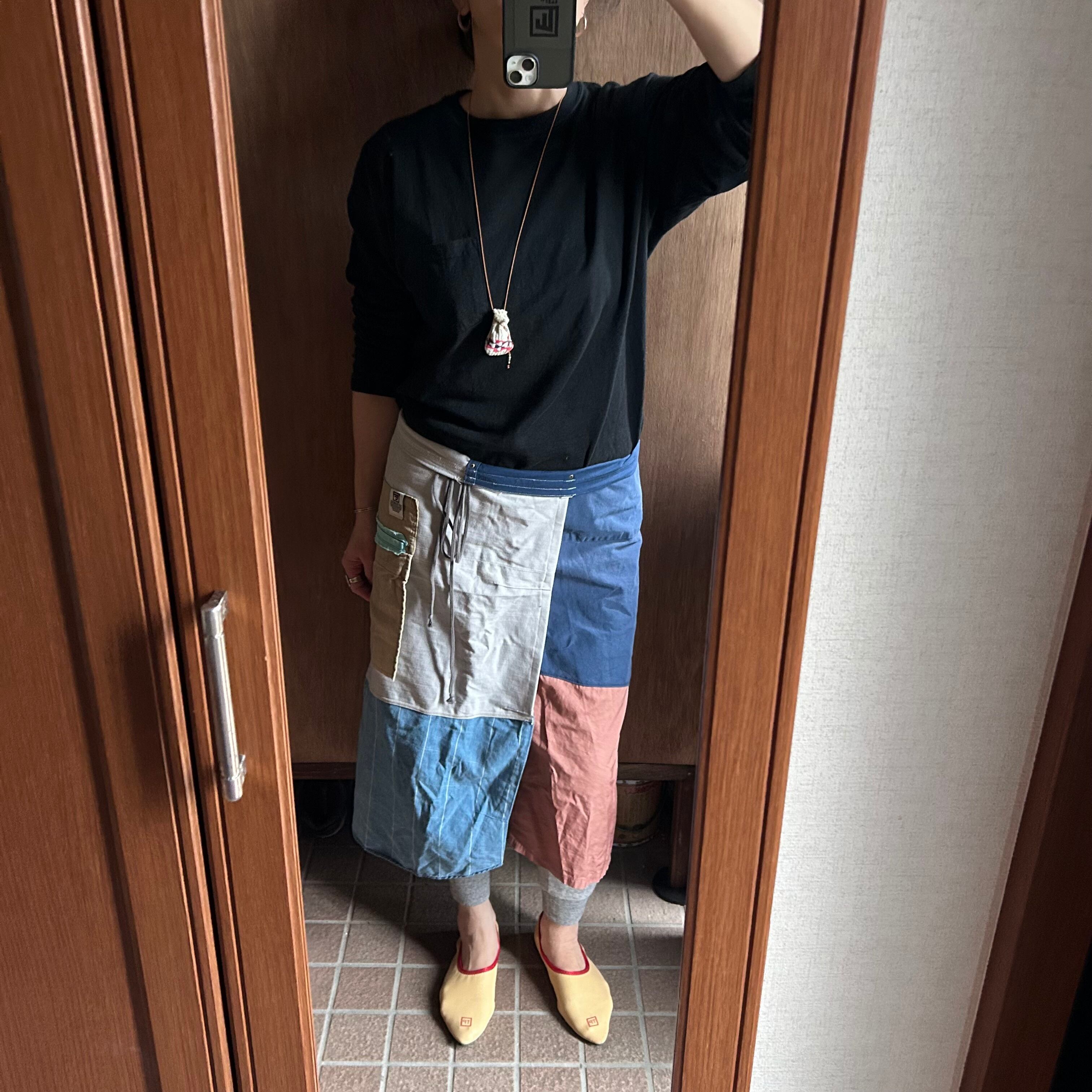 ♦︎前も後ろもスリットになる腰巻きエプロンです。