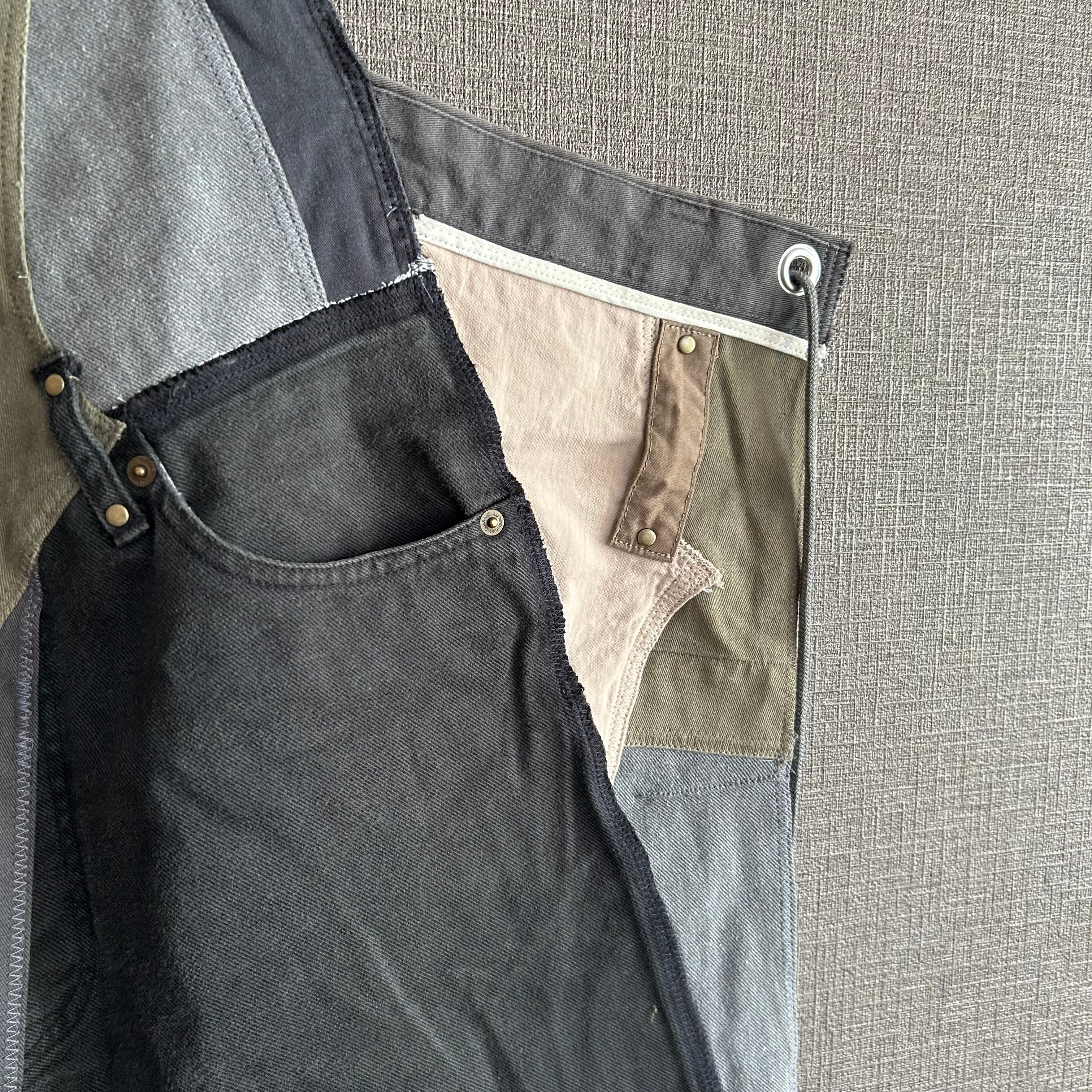 古着を解体し、パッチワークのように一つ一つ丁寧に縫い合わせたこのデザインは、まさに一点物の魅力を存分に感じさせてくれます。