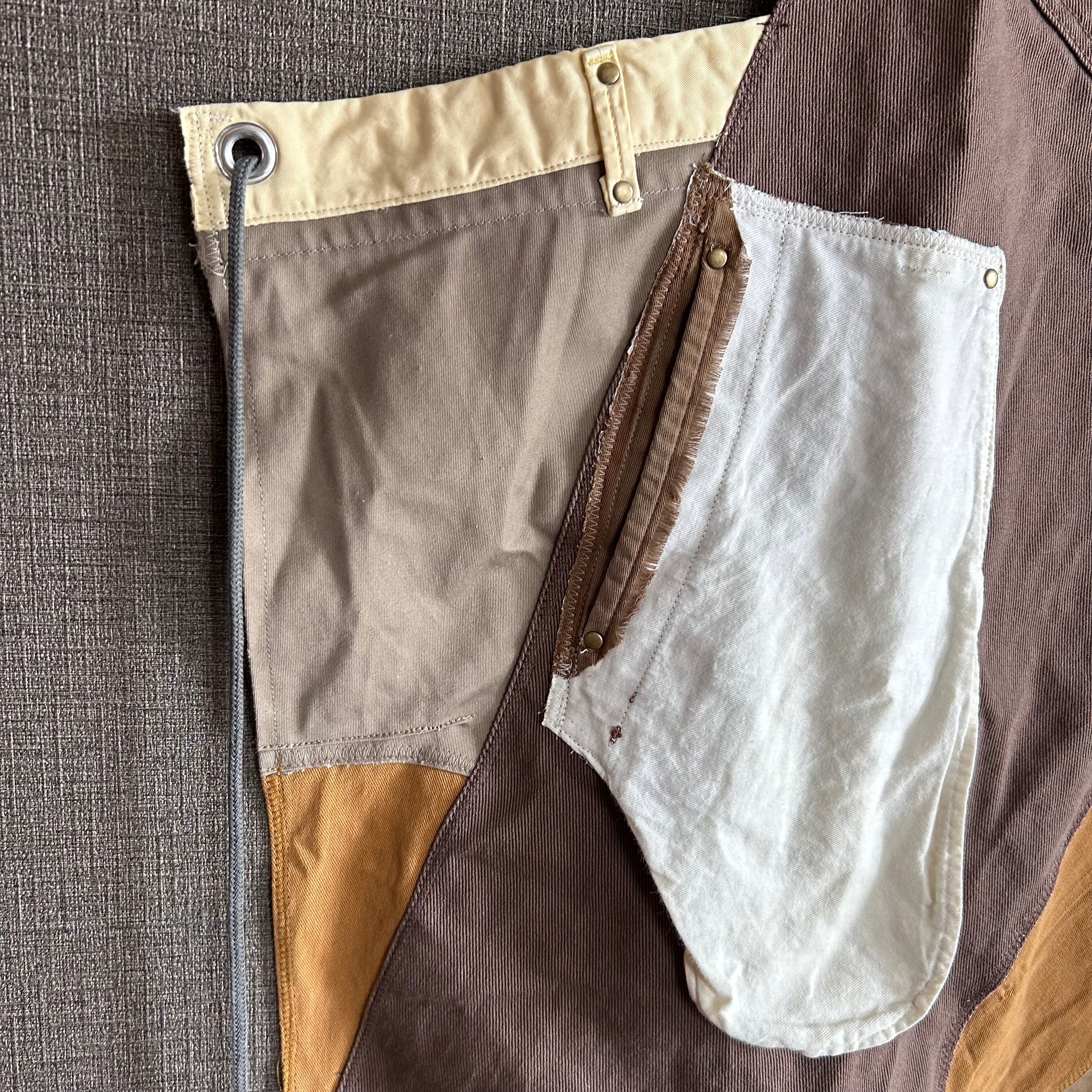 古着を解体し、パッチワークのように一つ一つ丁寧に縫い合わせたこのデザインは、まさに一点物の魅力を存分に感じさせてくれます。